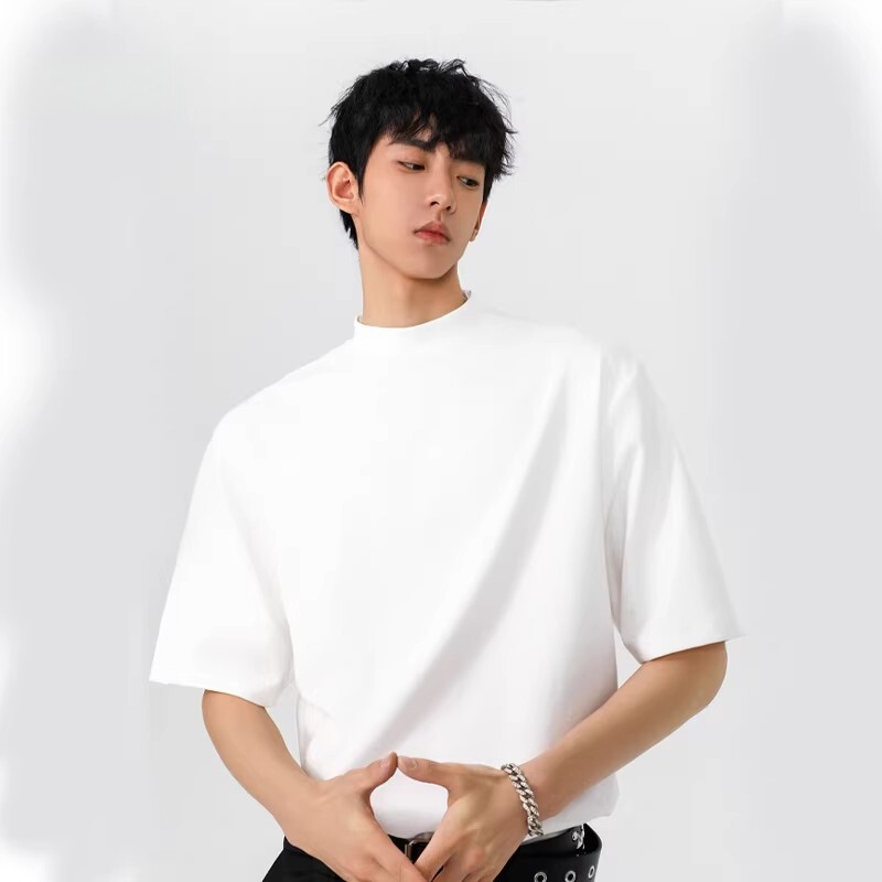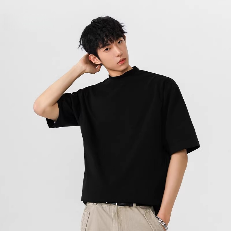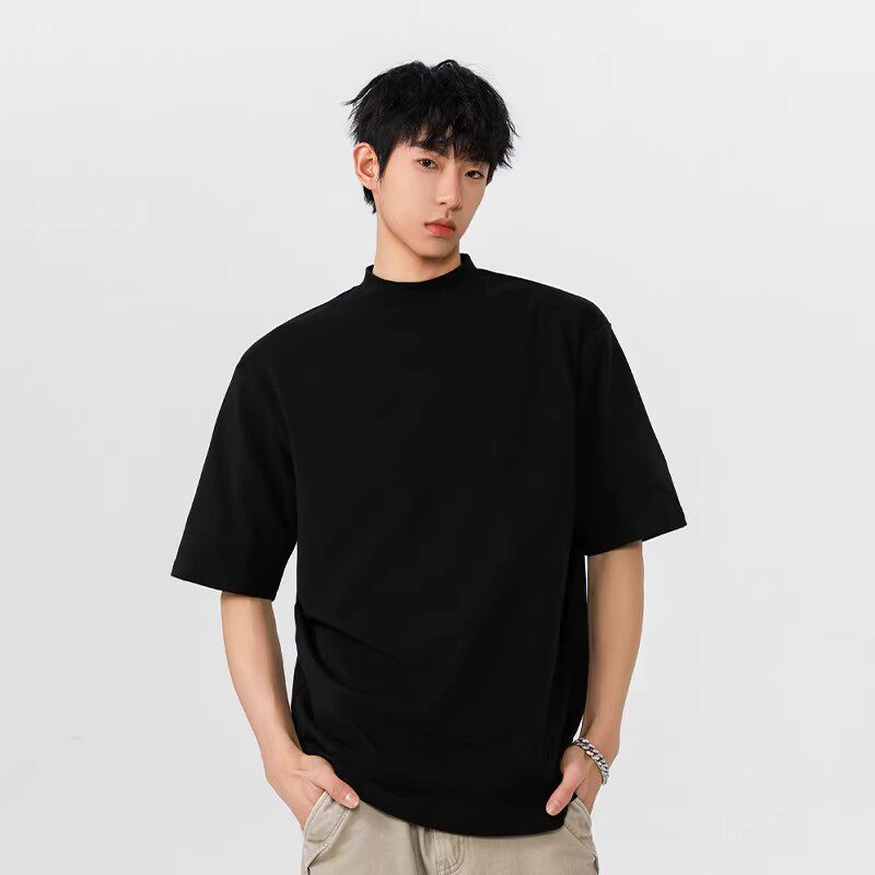 重磅黑色半高领短袖男款t恤2026新款小领口内搭打底上衣半袖衣服