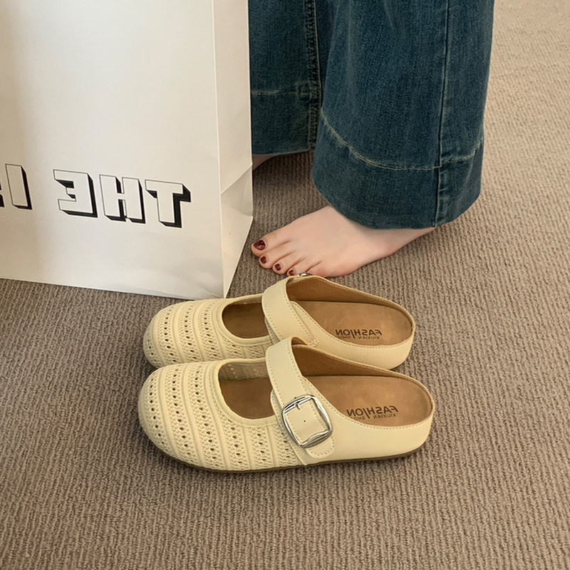 真皮包头穆勒鞋女半拖2025新款一脚蹬软面懒人平底拖鞋女夏外穿