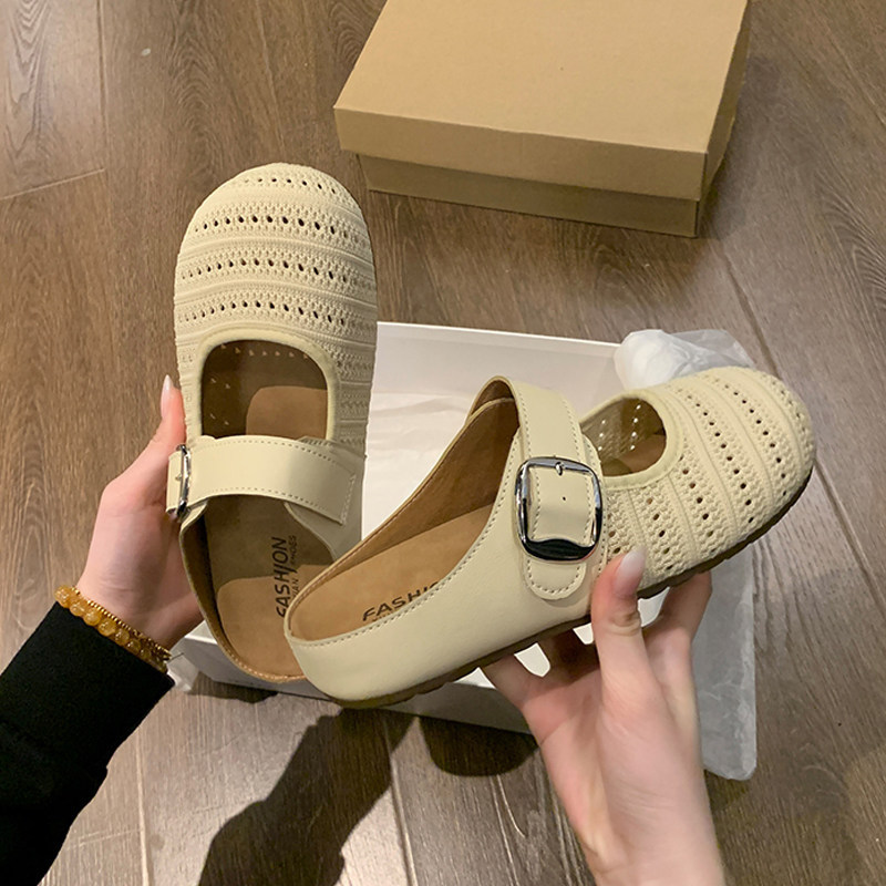 品牌真皮包头半拖鞋女2025夏新款厚底增高软底轻便网面透气凉拖鞋