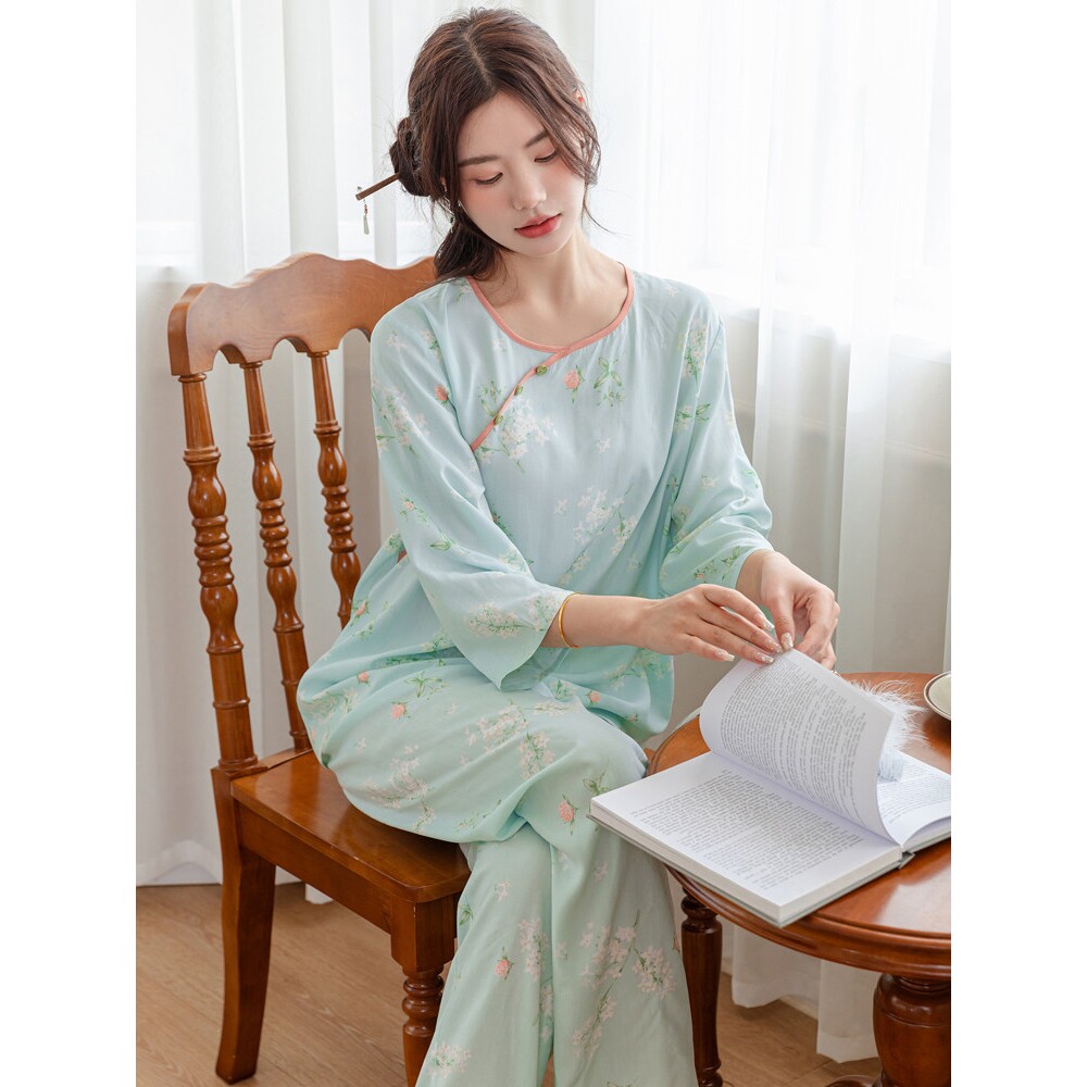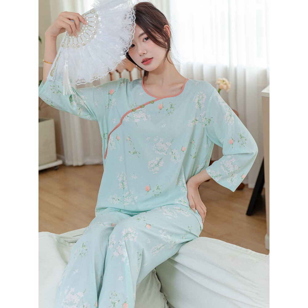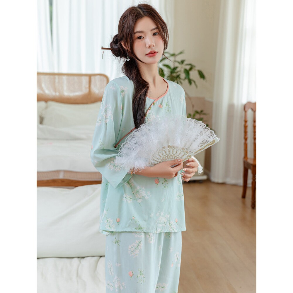 红豆棉绸睡衣女夏季款绵绸新中式家居服可外穿国风2025新款人造棉