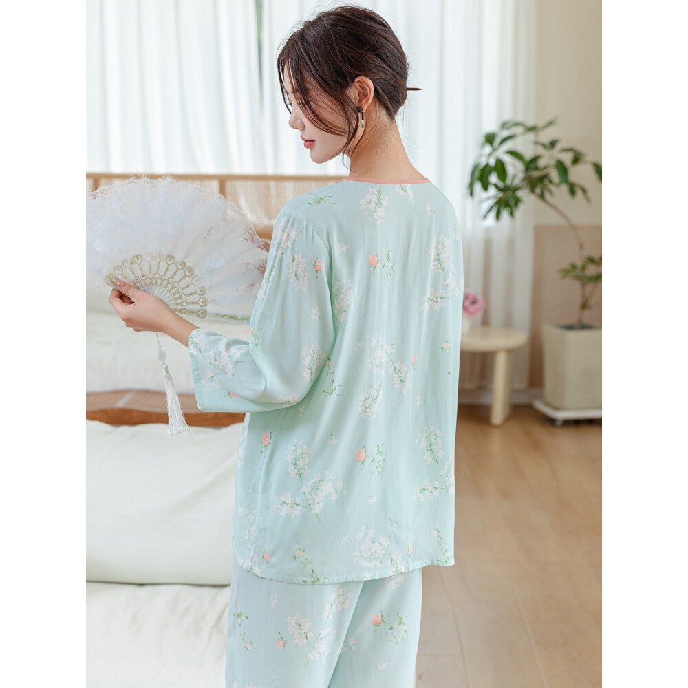 浪莎睡衣女春秋款纯棉长袖2025年新款秋冬大码薄款宽松开衫家居服