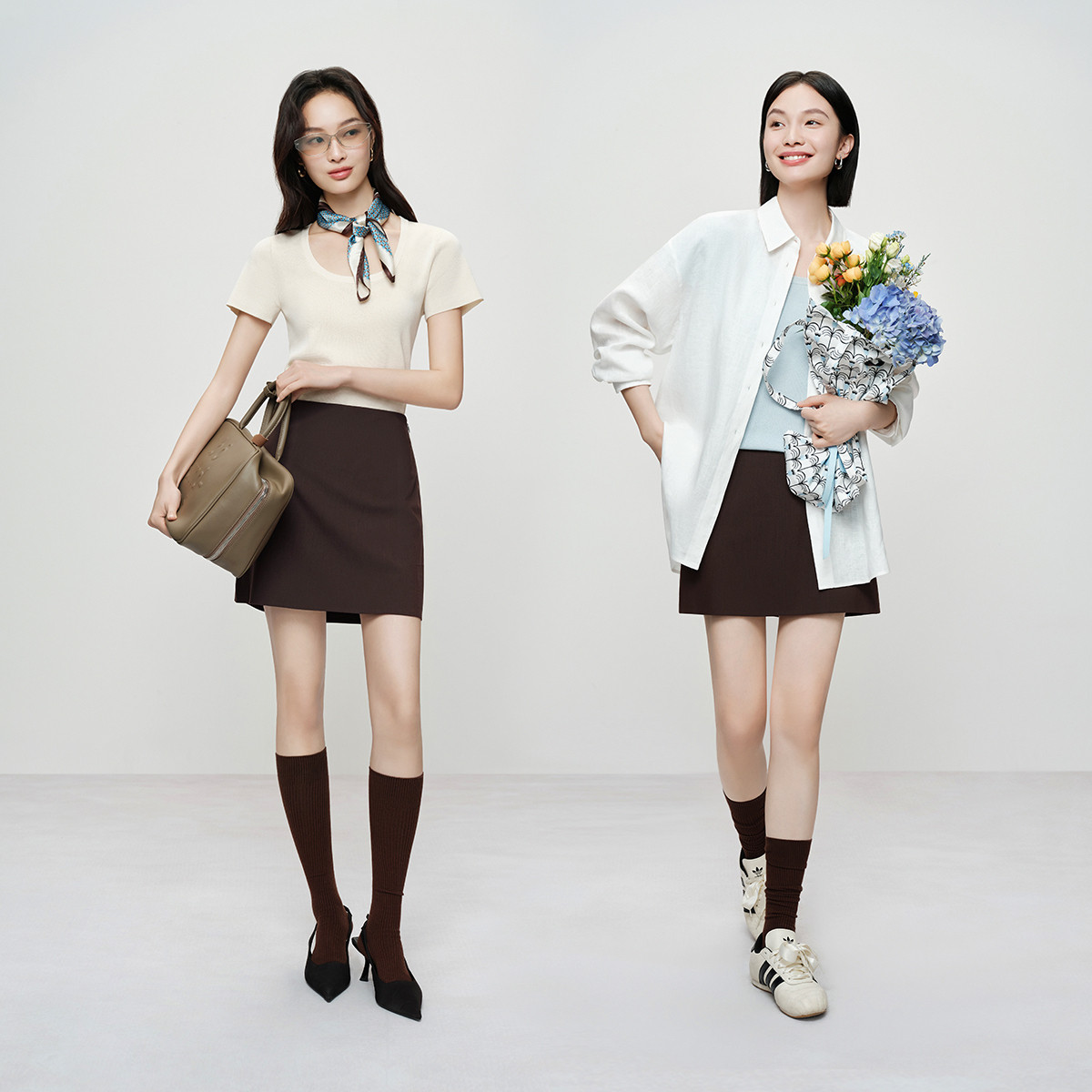 【凉感防晒系列】冰氨短裙naivee纳薇26夏新款微A字直筒半裙百搭