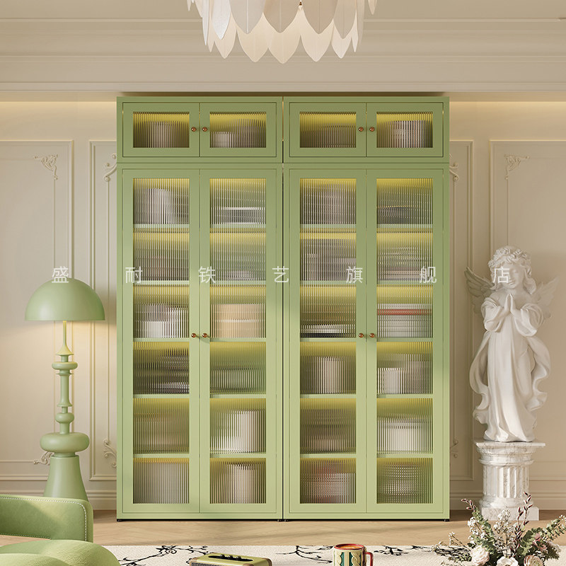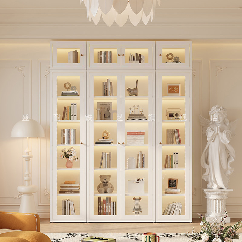 网红2.4米高长虹玻璃书柜顶柜组合法式奶油风儿童书架客厅展示柜
