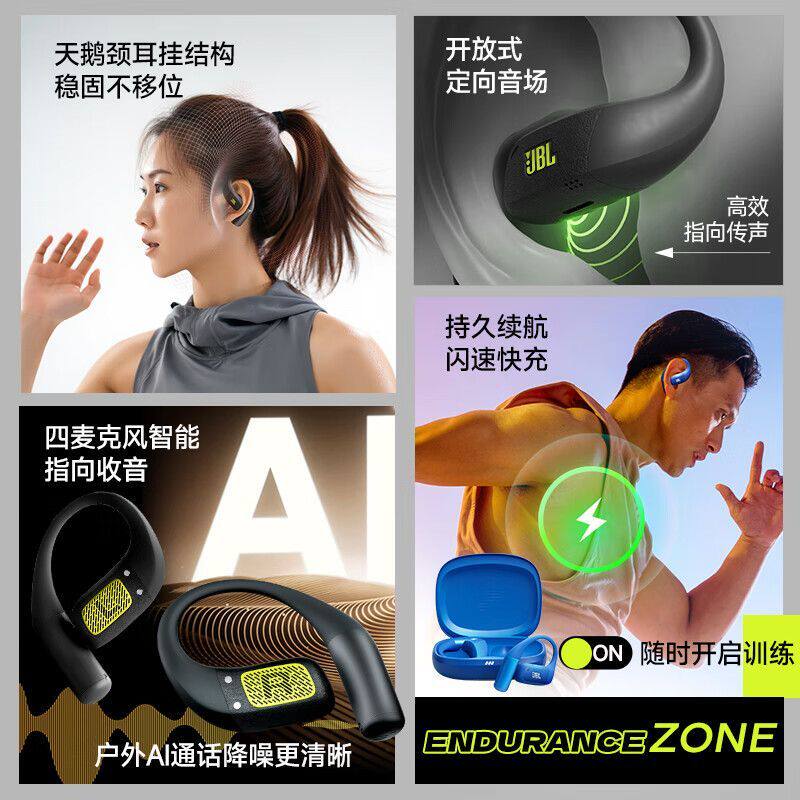 JBL ZONE悦动圈无线蓝牙开放式运动耳机防水挂耳式跑步运动游泳