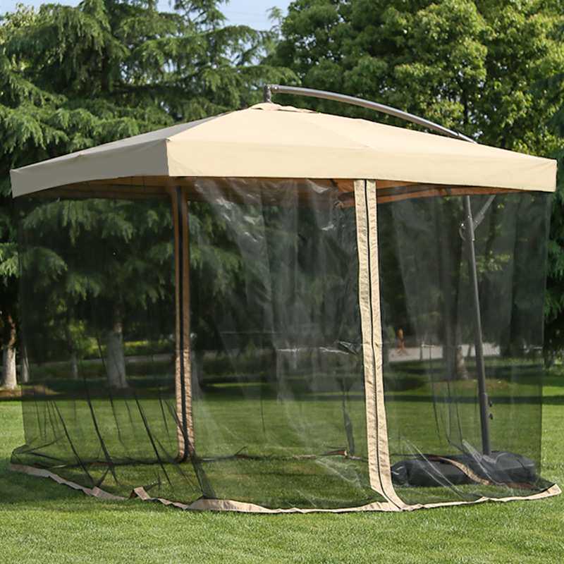 野人谷户外遮阳伞带蚊帐防蚊网庭院花园太阳伞带拉链网纱伞网罩