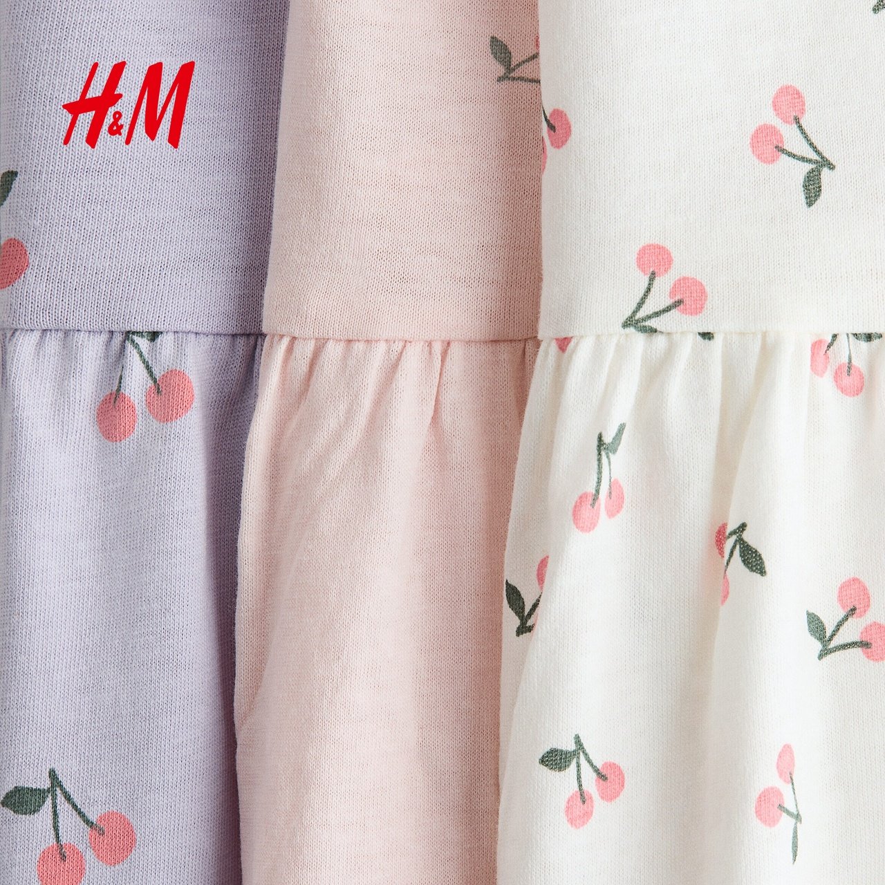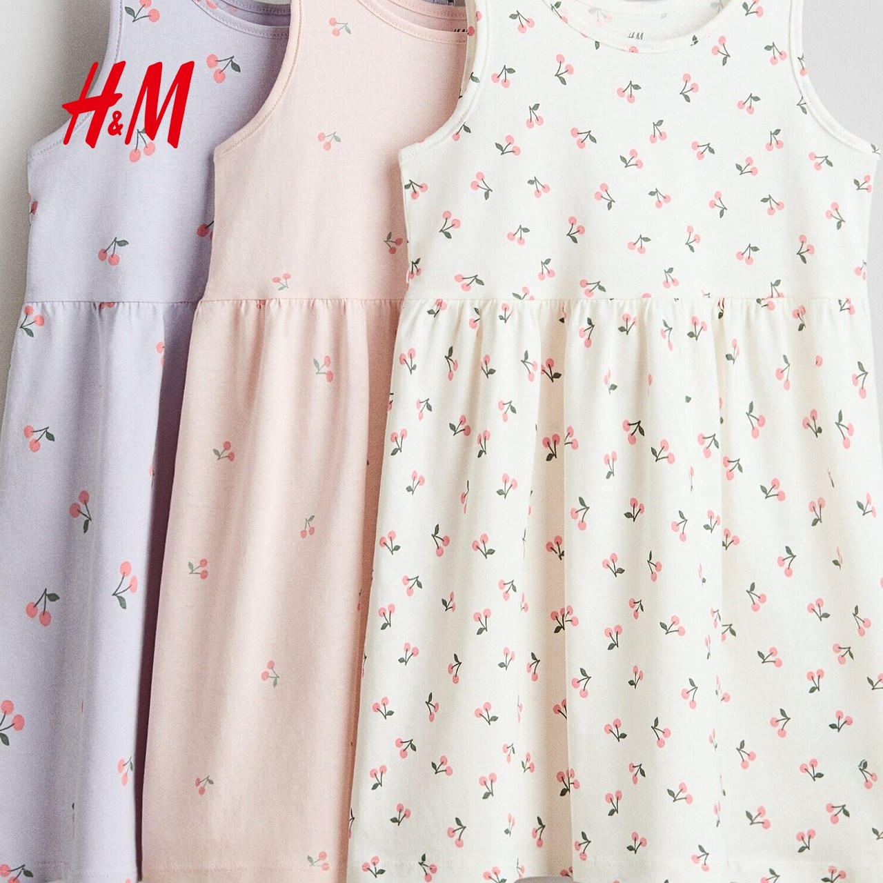 HM童装儿童女童裙子3件装2026春季新款印花出游休闲连衣裙1281576