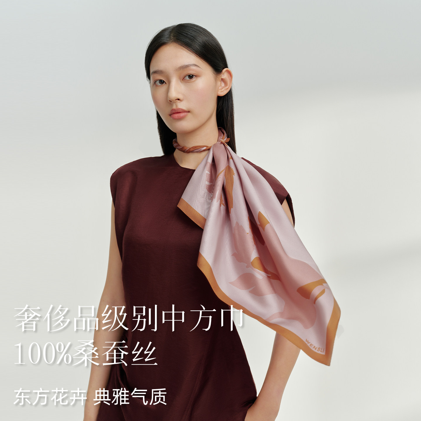 万事利26春夏新品丝巾100%桑蚕丝双面印花中方巾女礼盒礼袋锦上花