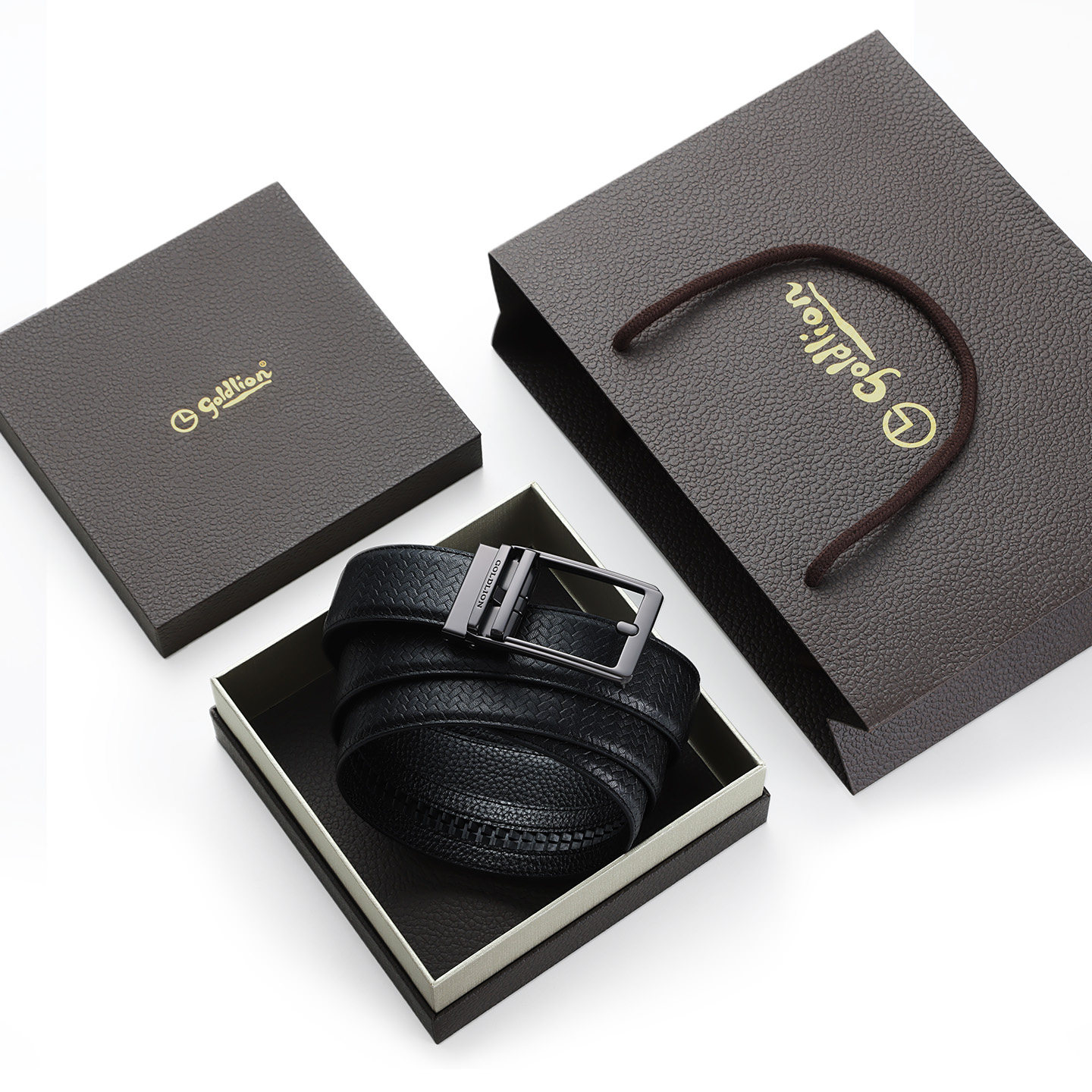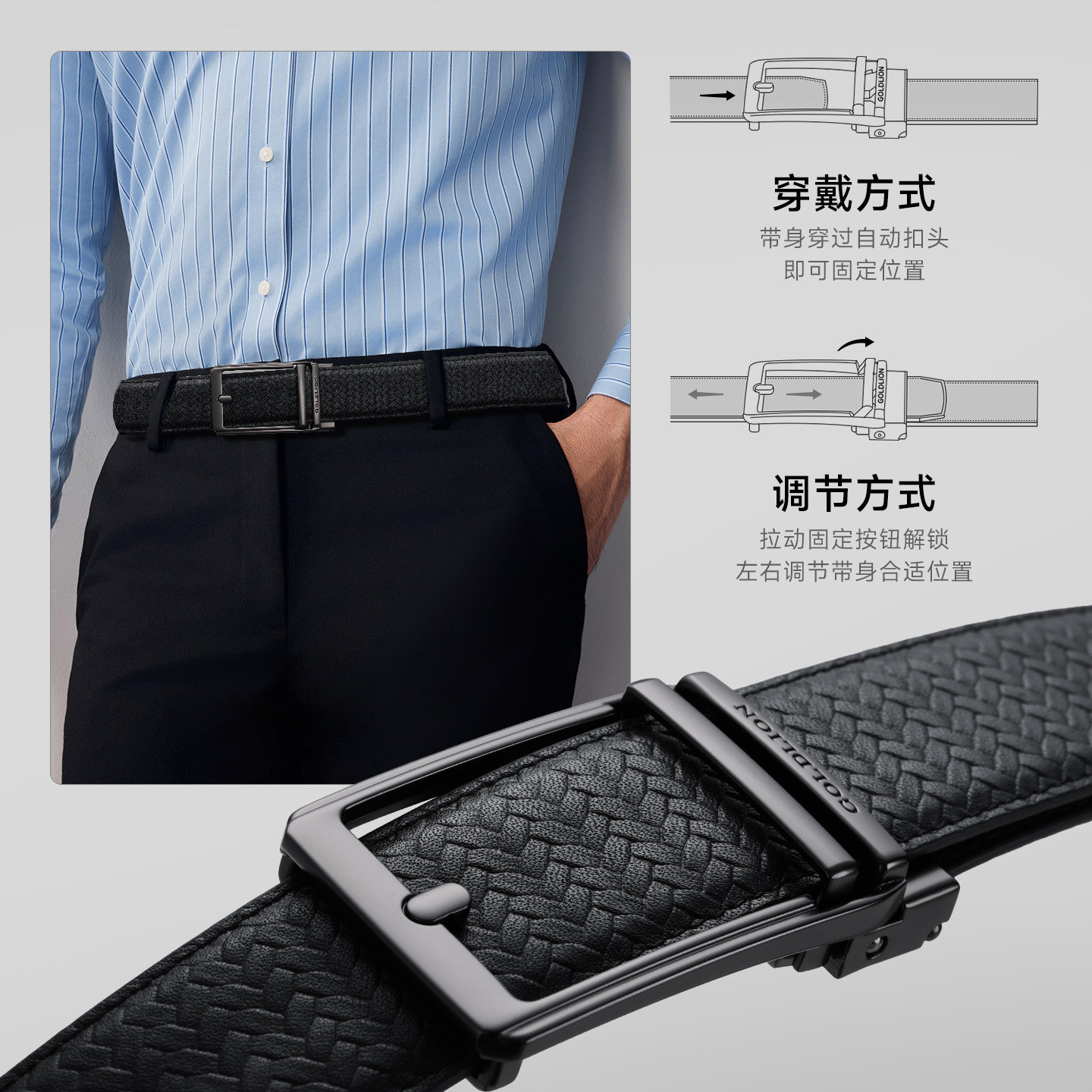 【轻松扣】金利来皮带男士新款针扣自动扣编织款头层牛皮皮带腰带