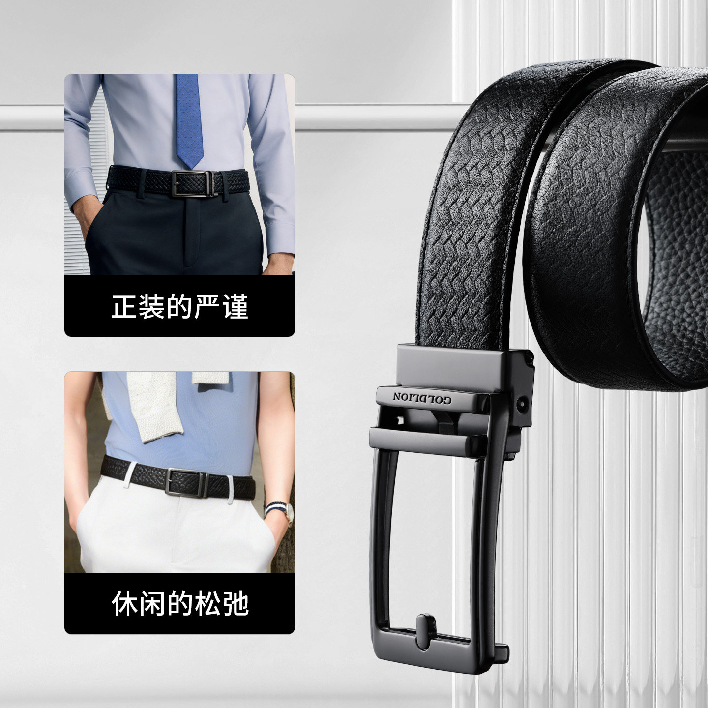 头层牛皮 针扣自动扣
