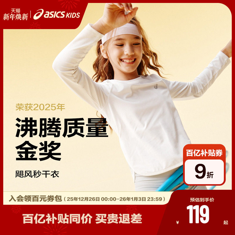 ASICS/亚瑟士童装26年春季女童运动吸湿长袖弹力有型飓风秒干衣
