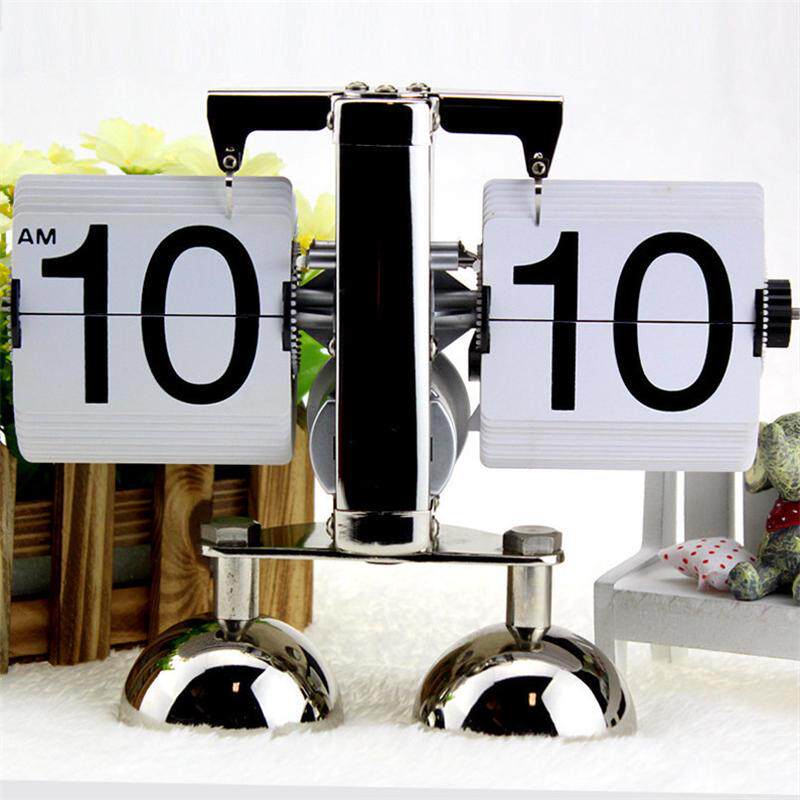 妙刻欧式自动翻页钟复古北欧风格桌面机械翻页时钟简约家用座钟