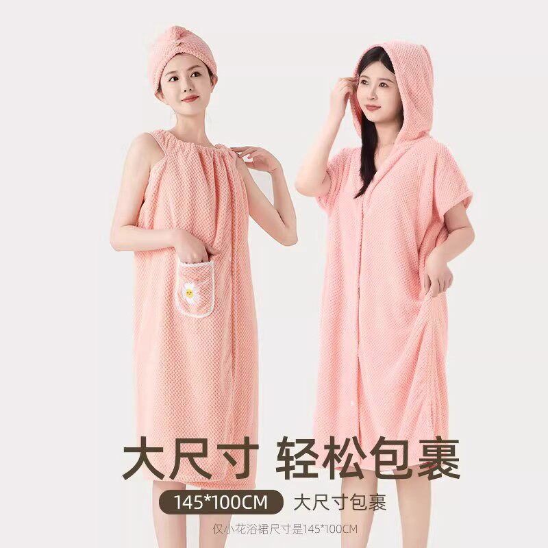 三利可穿式浴巾浴袍速干女家用厚连帽非纯棉浴裙浴衣2025新款裹巾
