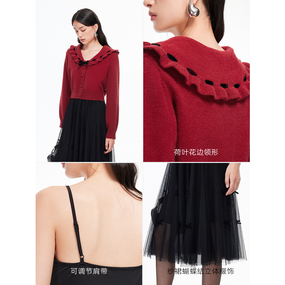 BANANA CICI2026年春季新款荷叶边V领针织衫/连衣裙