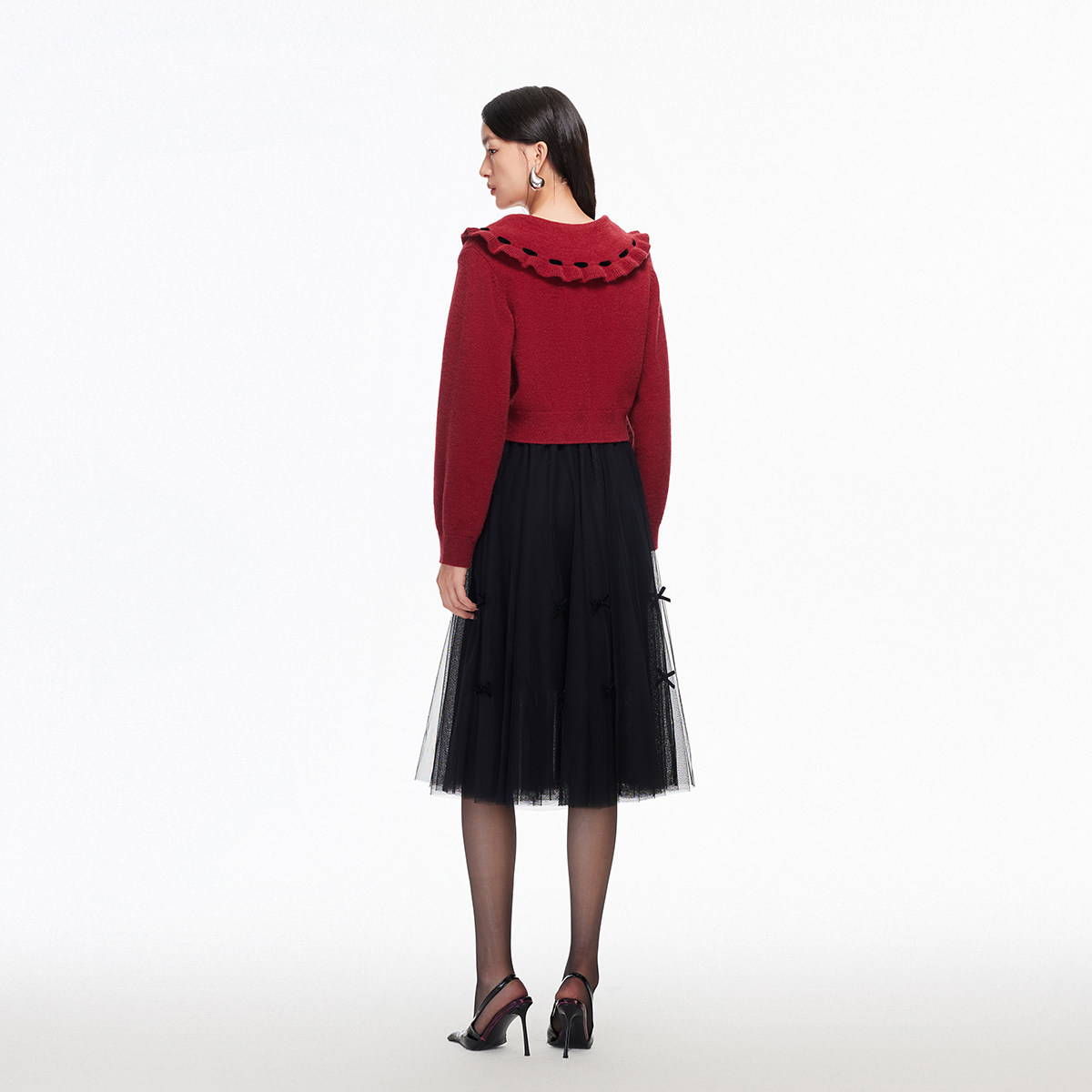 Vero Moda连衣裙2025冬季新款蝴蝶结针织衫红色裙子325446023