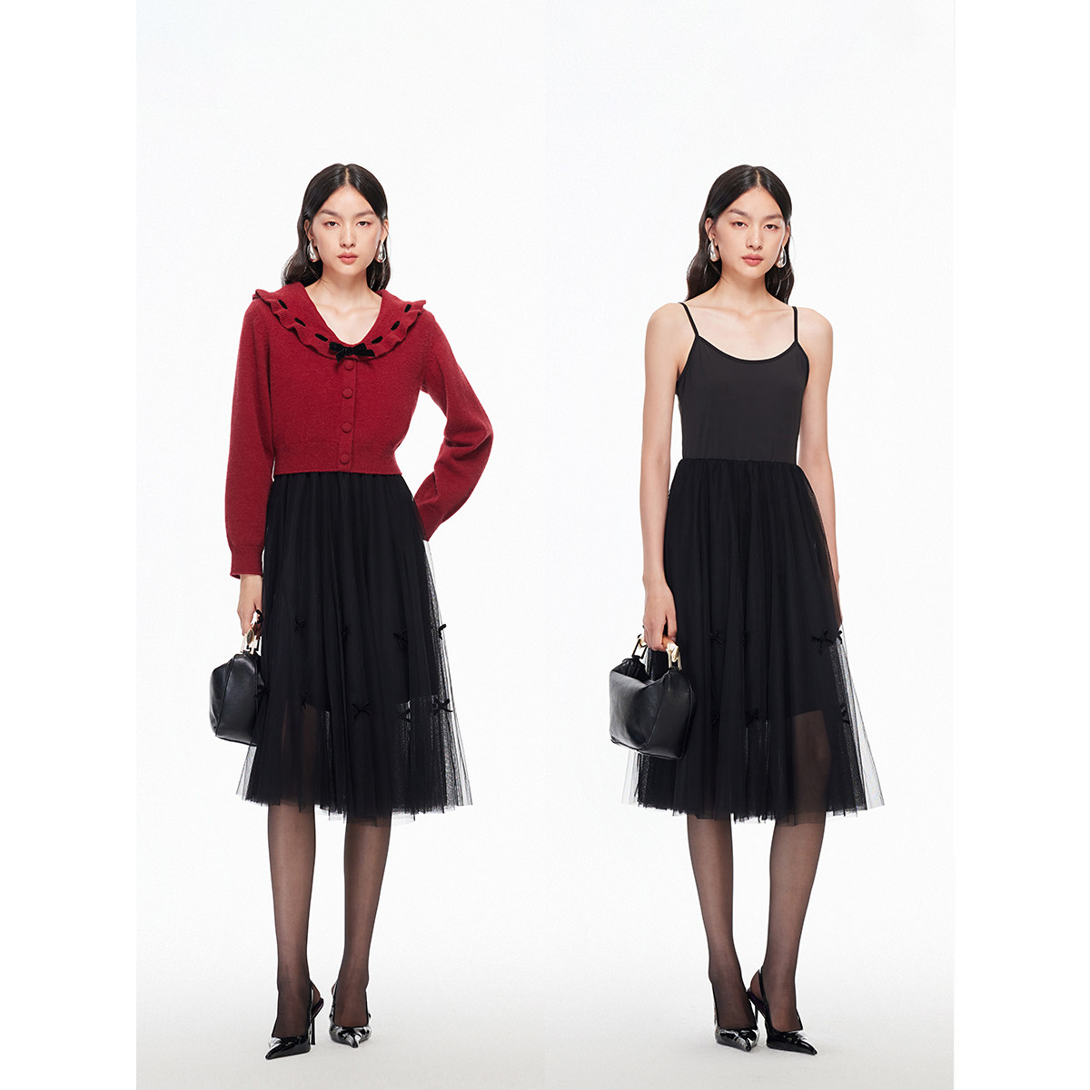 两件套设计,一衣多穿;立体蝴蝶结装饰