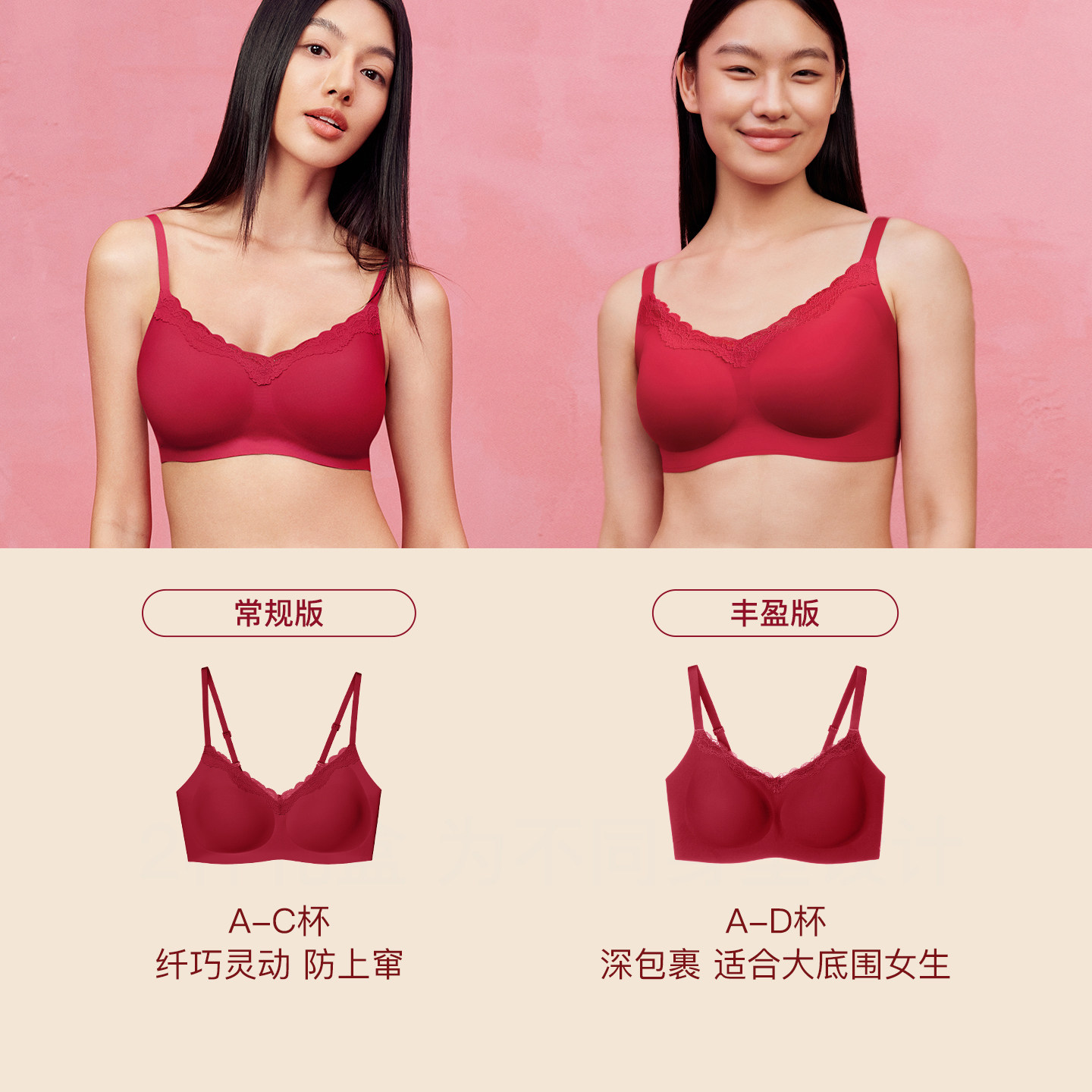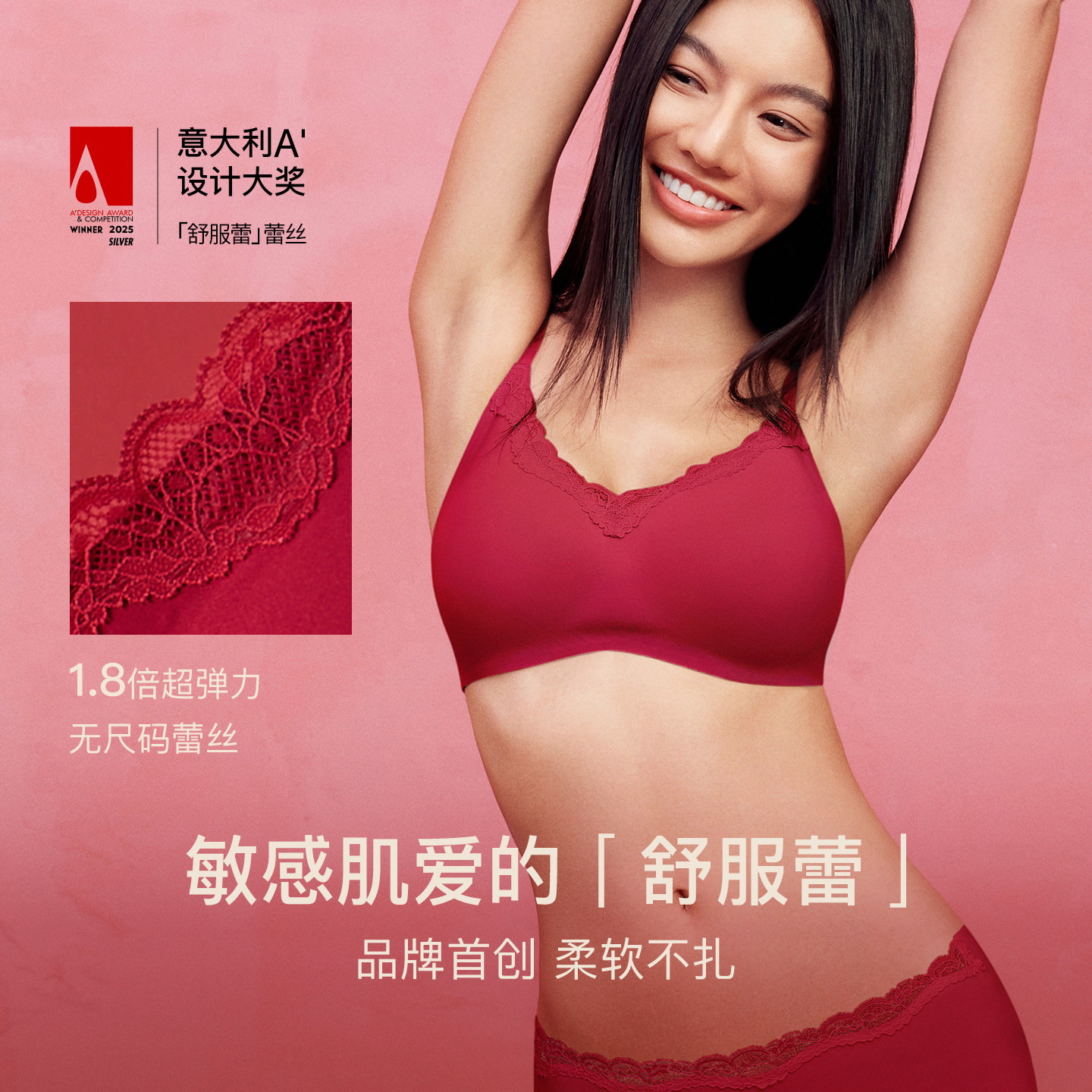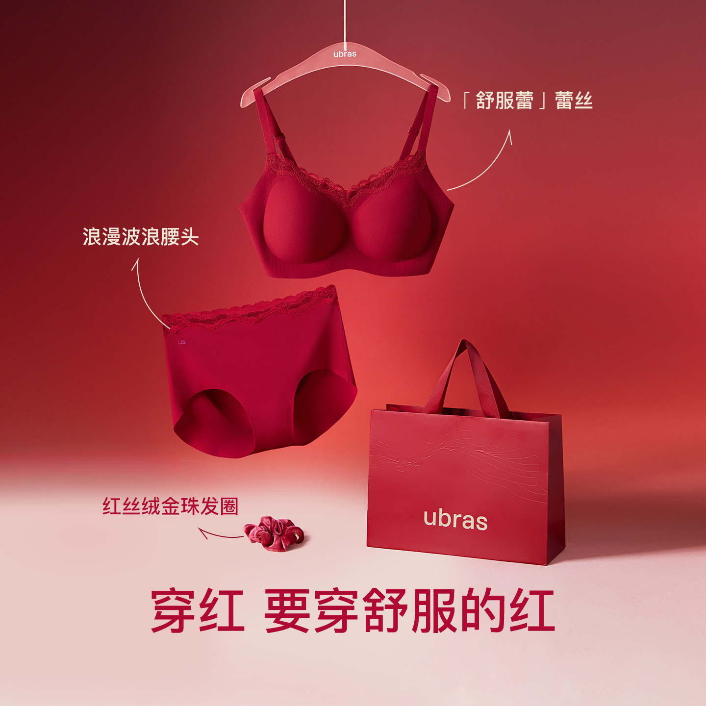 ubras无尺码舒服蕾红盒本命年马年蕾丝无痕背心文胸内衣裤套装女
