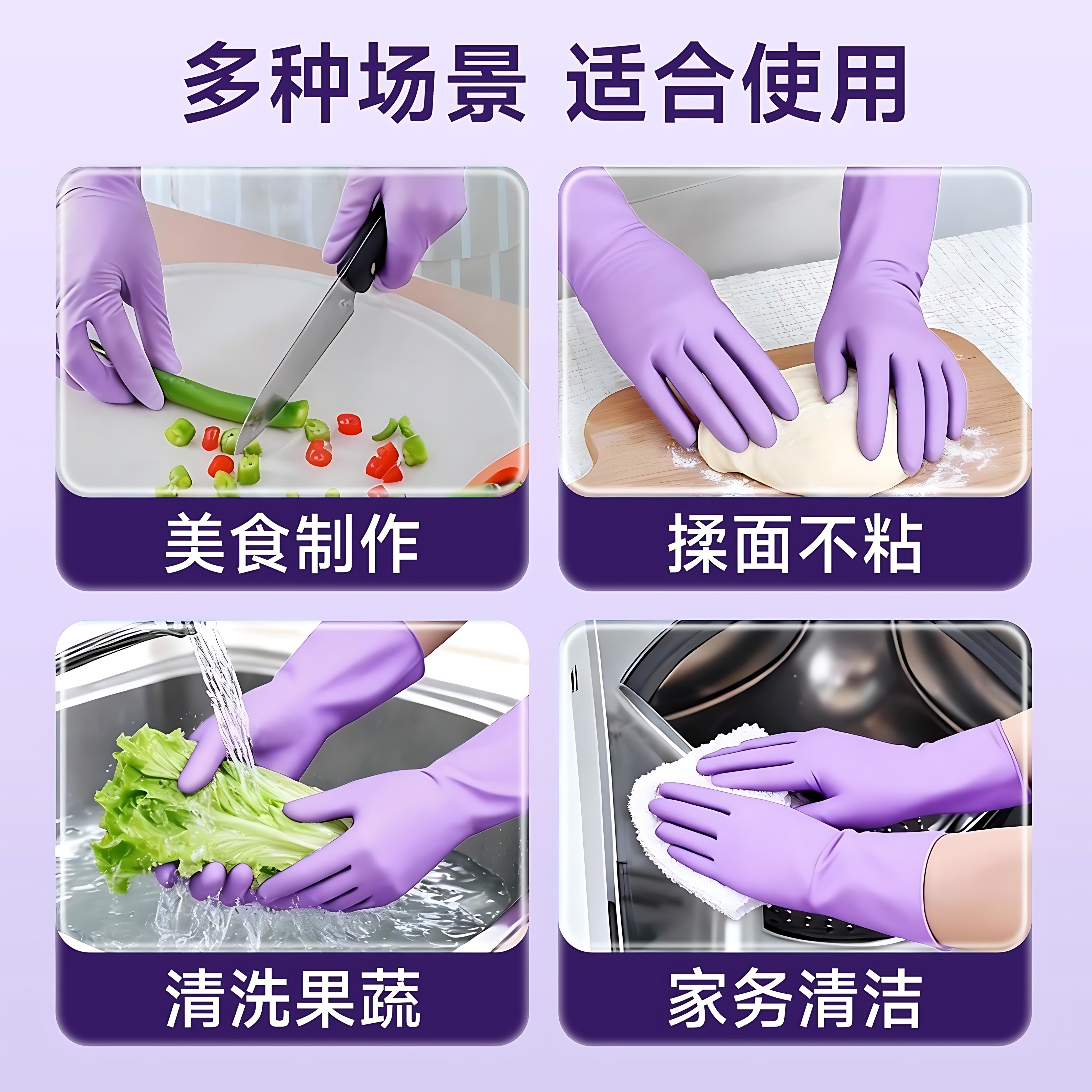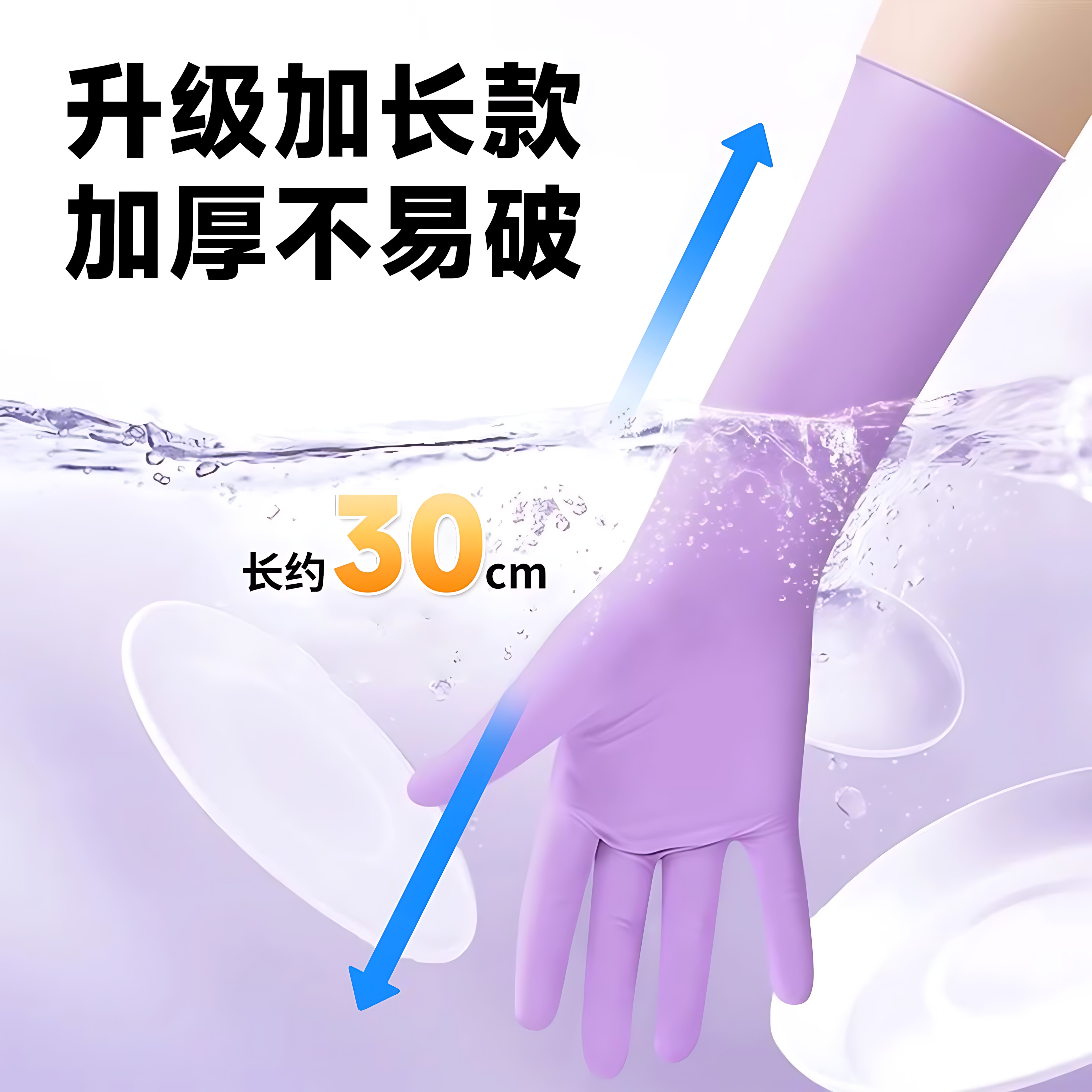 加长家务手套耐用一次性丁腈pvc清洁厨房洗碗橡胶防水紫色防护