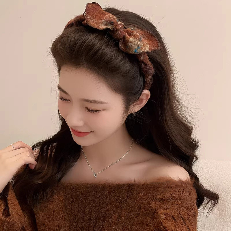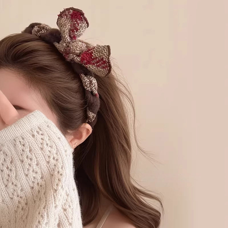 秋冬氛围绑带蝴蝶结发箍女时尚百搭高颅顶毛线头箍不压发卡头饰