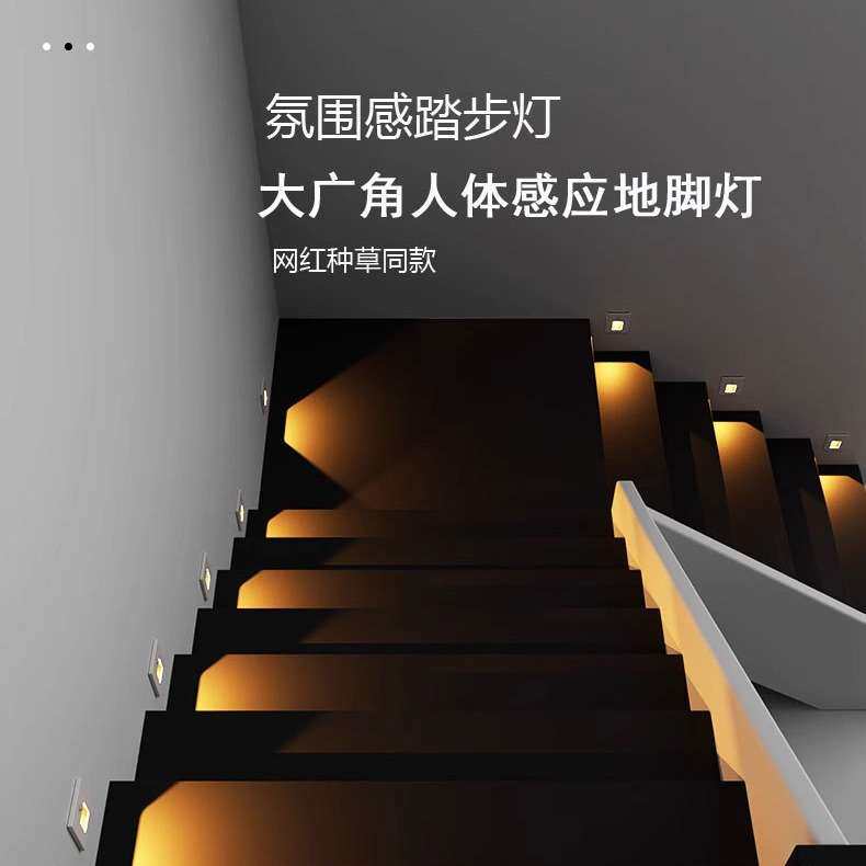 86嵌入式磁吸地脚灯人体感应楼梯踏步灯台阶灯地角灯踢脚灯感应灯