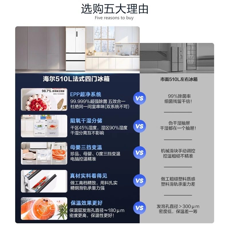 海尔电冰箱510L升白色大容量法式多门双开一级能效家用无霜旗舰店