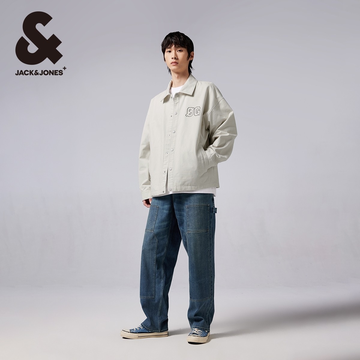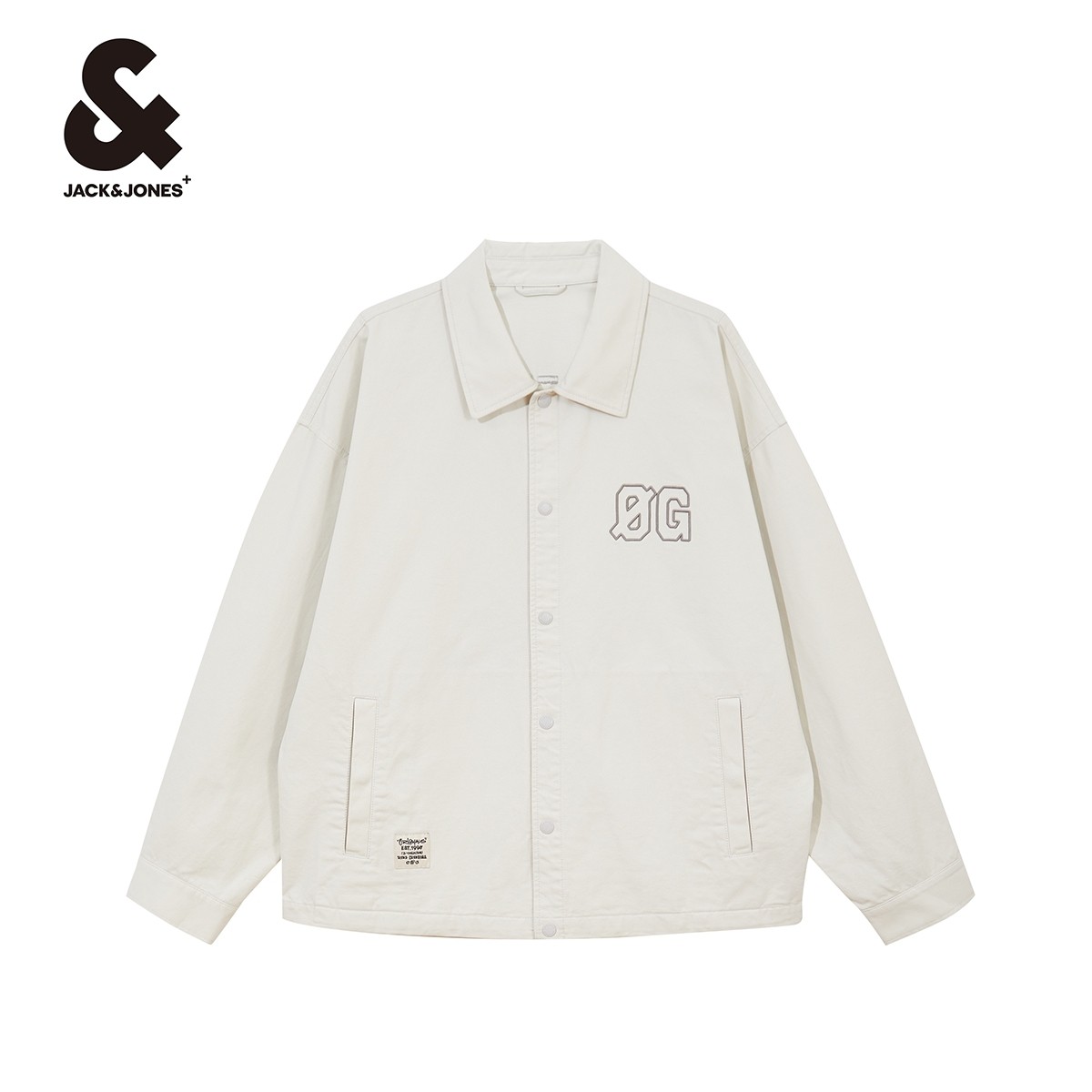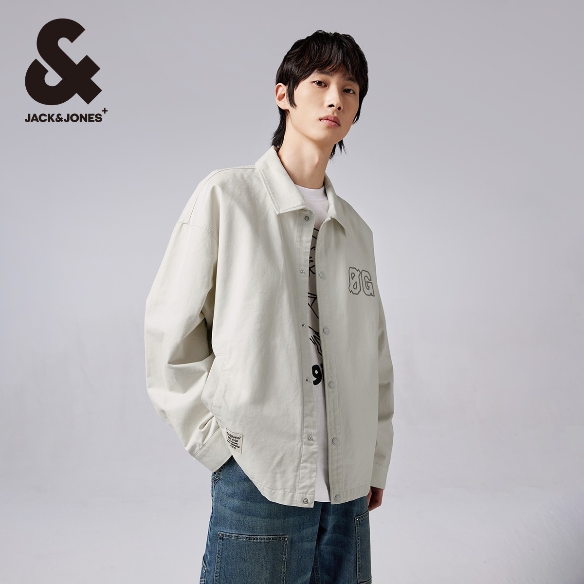 杰克琼斯秋季新舒适男装士宽松字母刺绣胶印翻领按扣外套衬衫男装