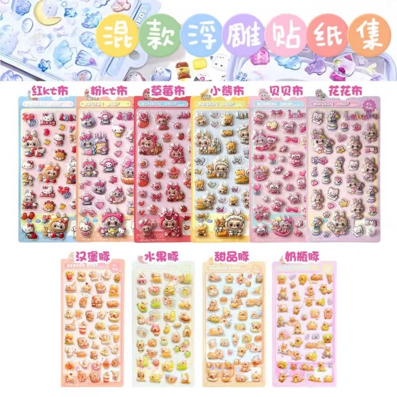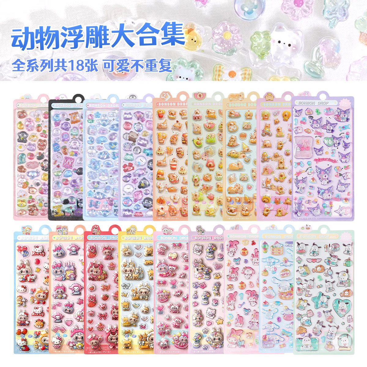 卡通唯美3d立体贴纸浮雕亚克力钻石宝石儿童女孩手机装饰贴画海洋猫咪家族动物