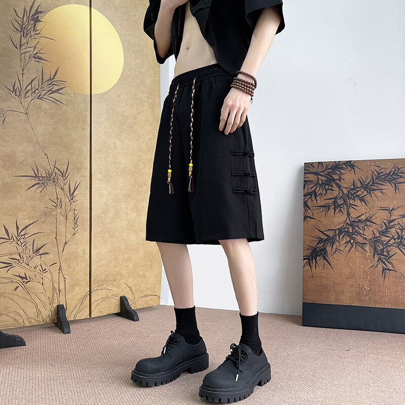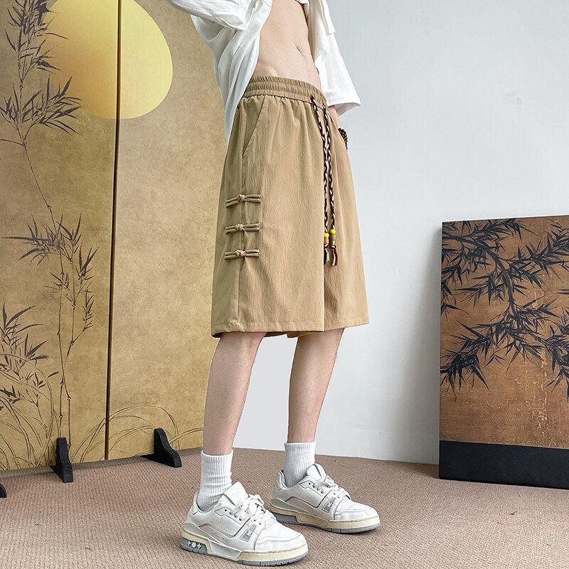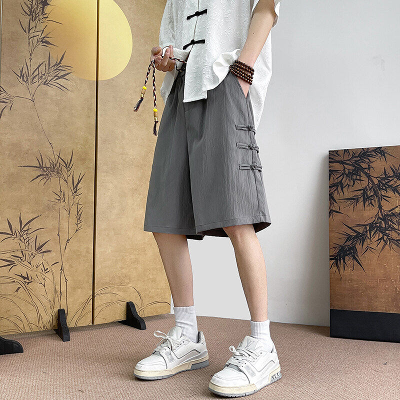 胖子短裤男夏季睡裤冰丝薄款加肥加大码裤子新中式国风盘扣五分裤