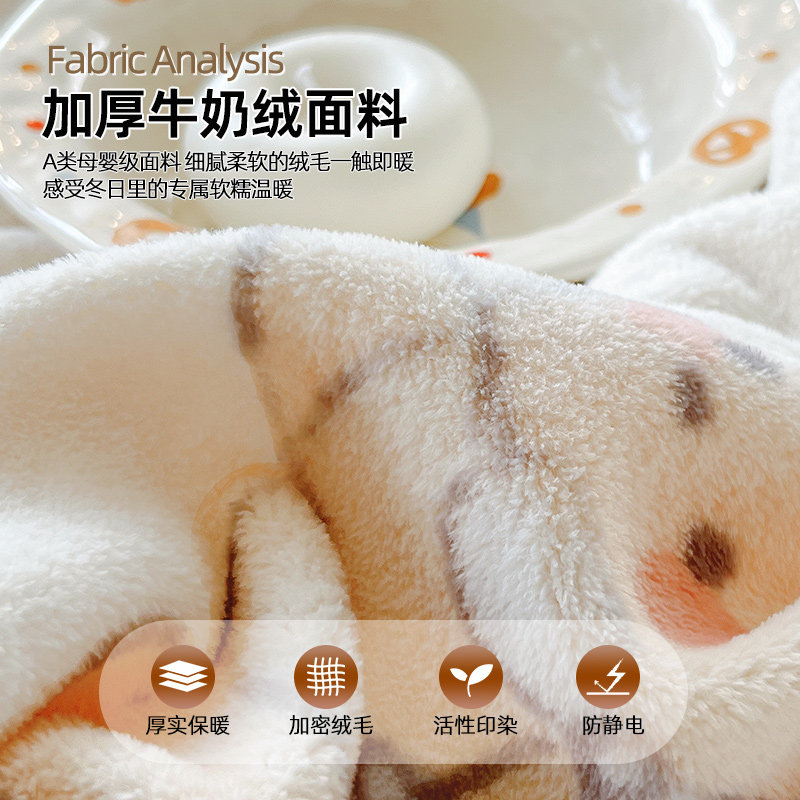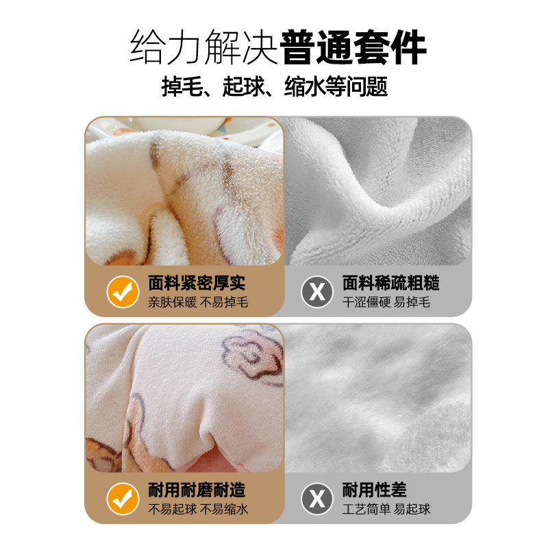 洁丽雅牛奶绒四件套冬季珊瑚绒被套床单加绒毛绒法兰绒床上三件套
