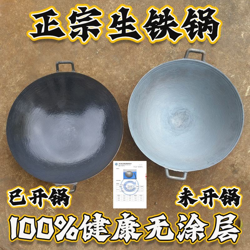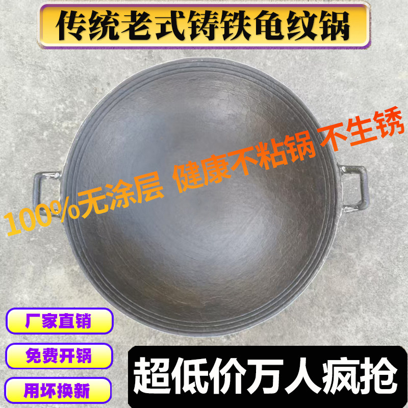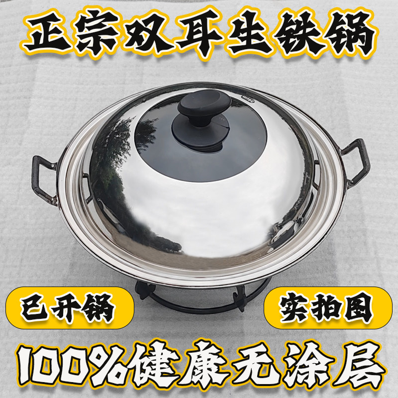【免费开锅】老式生铁锅铸铁铸造双耳铁锅不粘锅农村老款圆底炒锅