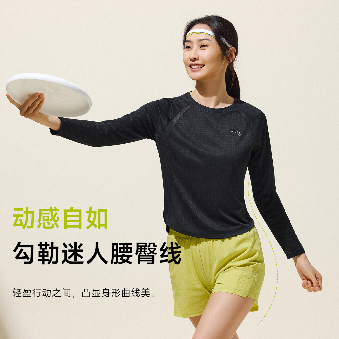 安踏跑步速干T长袖t恤女夏季吸汗透气瑜伽训练服修身打底运动上衣