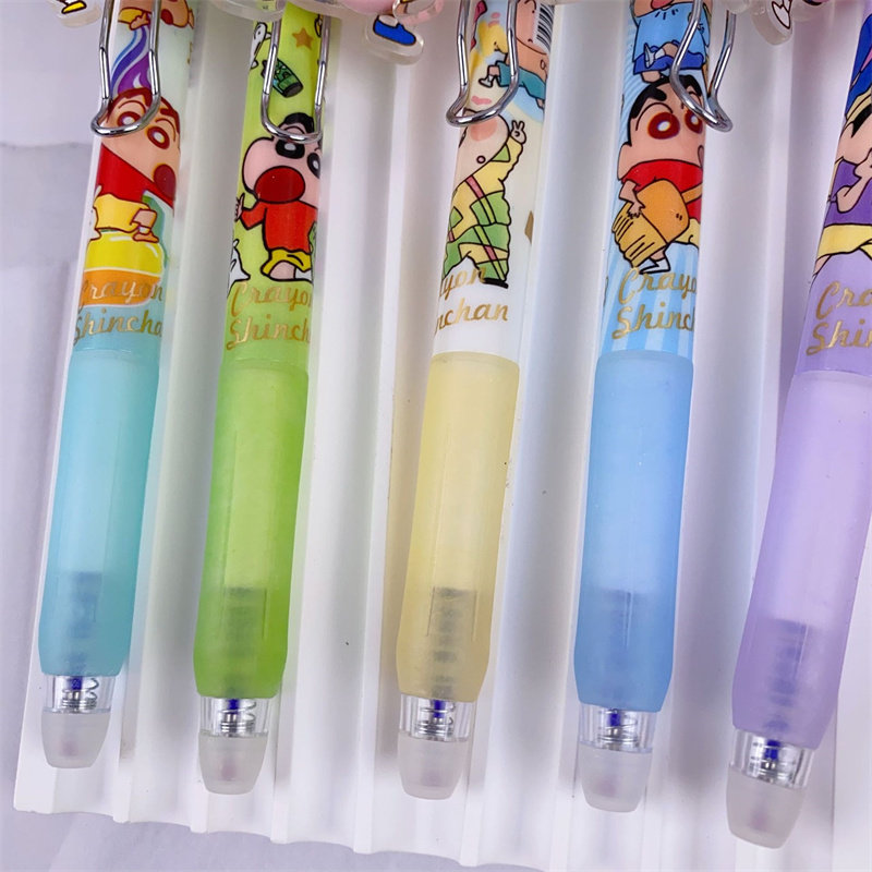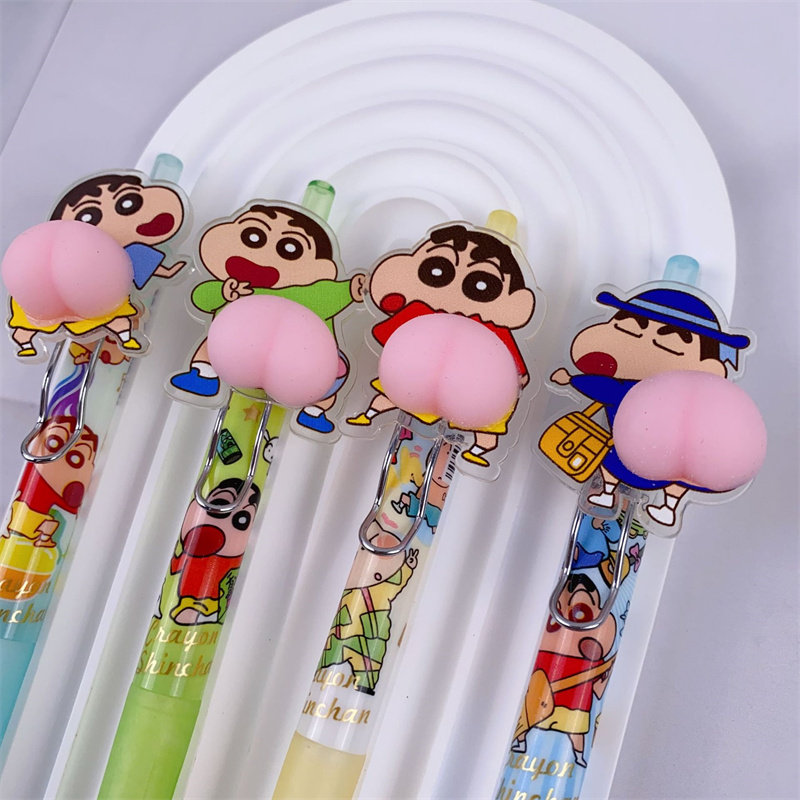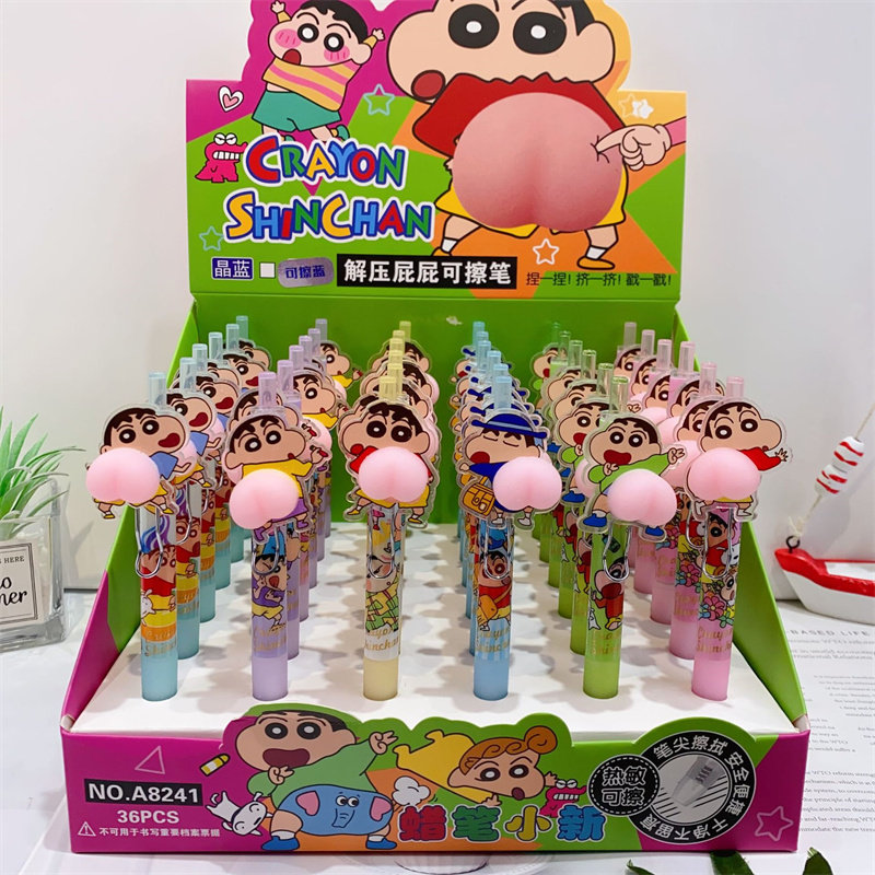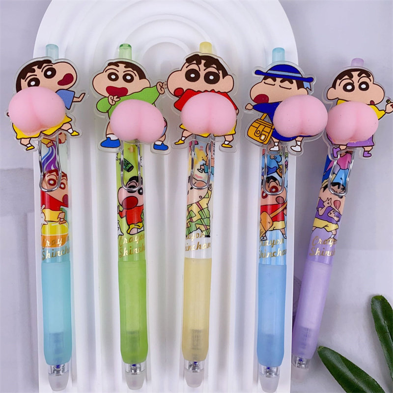 新款蜡笔小新屁屁捏捏乐可擦蓝中性笔按动创意卡通可爱日系动漫。