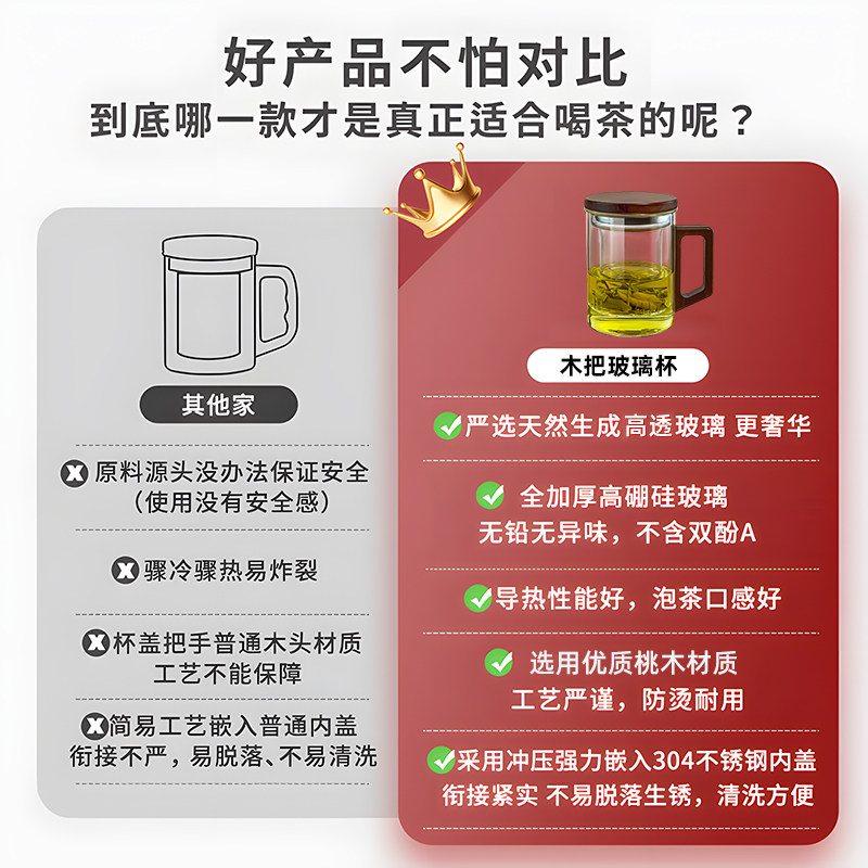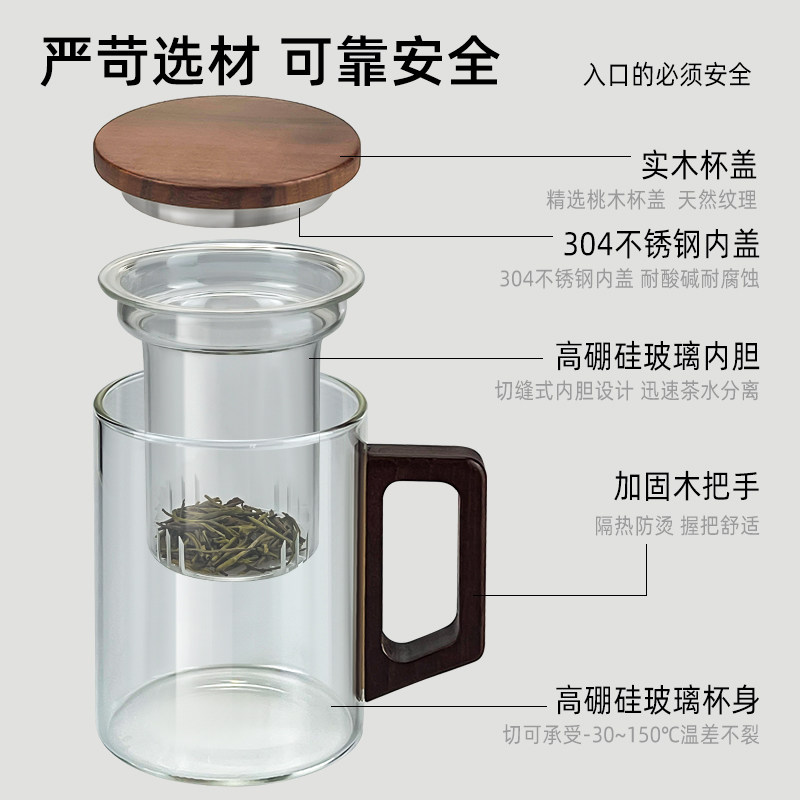 高硼硅玻璃杯带盖茶杯男士泡茶专用水杯2025新款高端茶水分离杯子