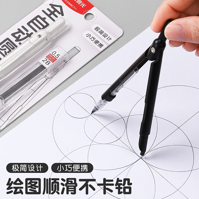 晨光笔式圆规初中生专用金属圆规高颜值高中生专业绘图数学考试按动出芯小学生专用六年级笔型圆规可替换笔芯