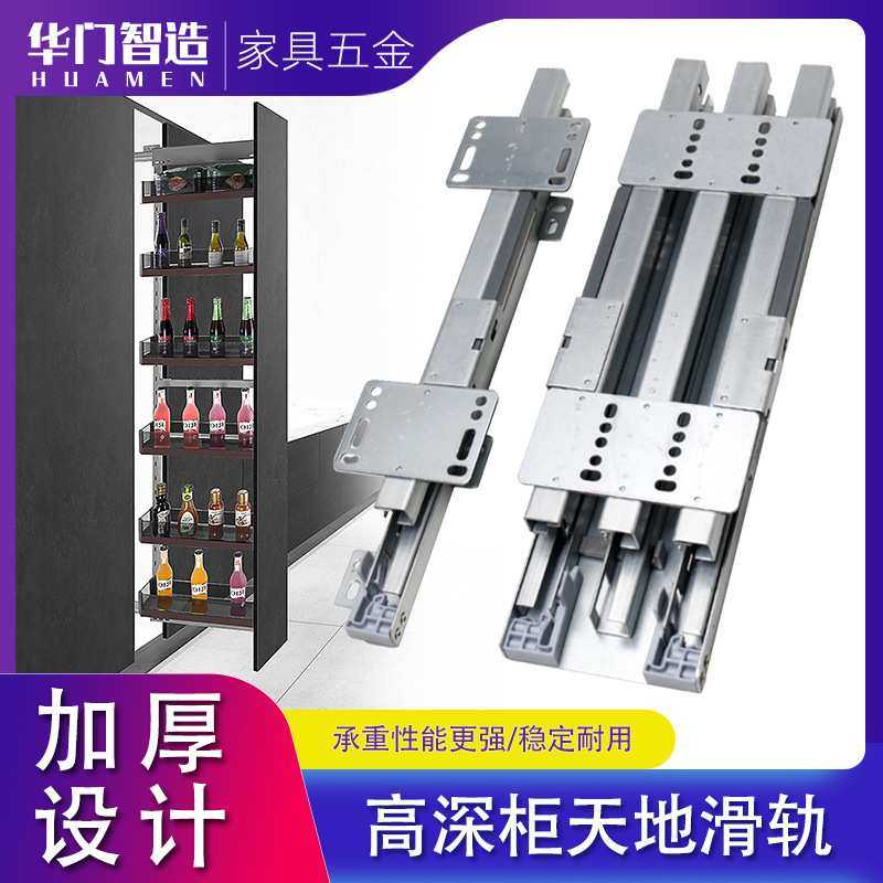 高深柜重型天地导轨阻尼缓冲滑轨橱柜静音托底隐藏书柜上下装轨道