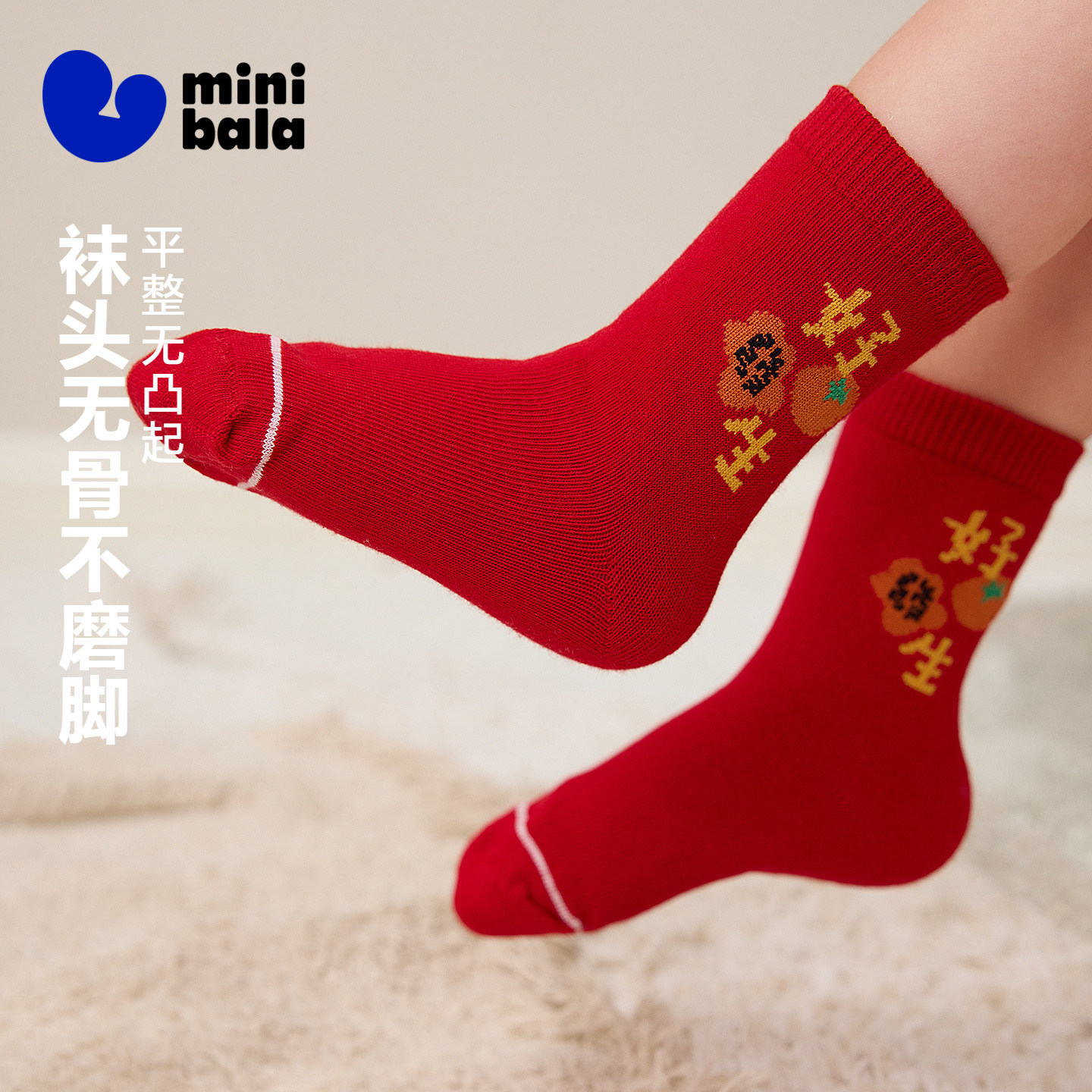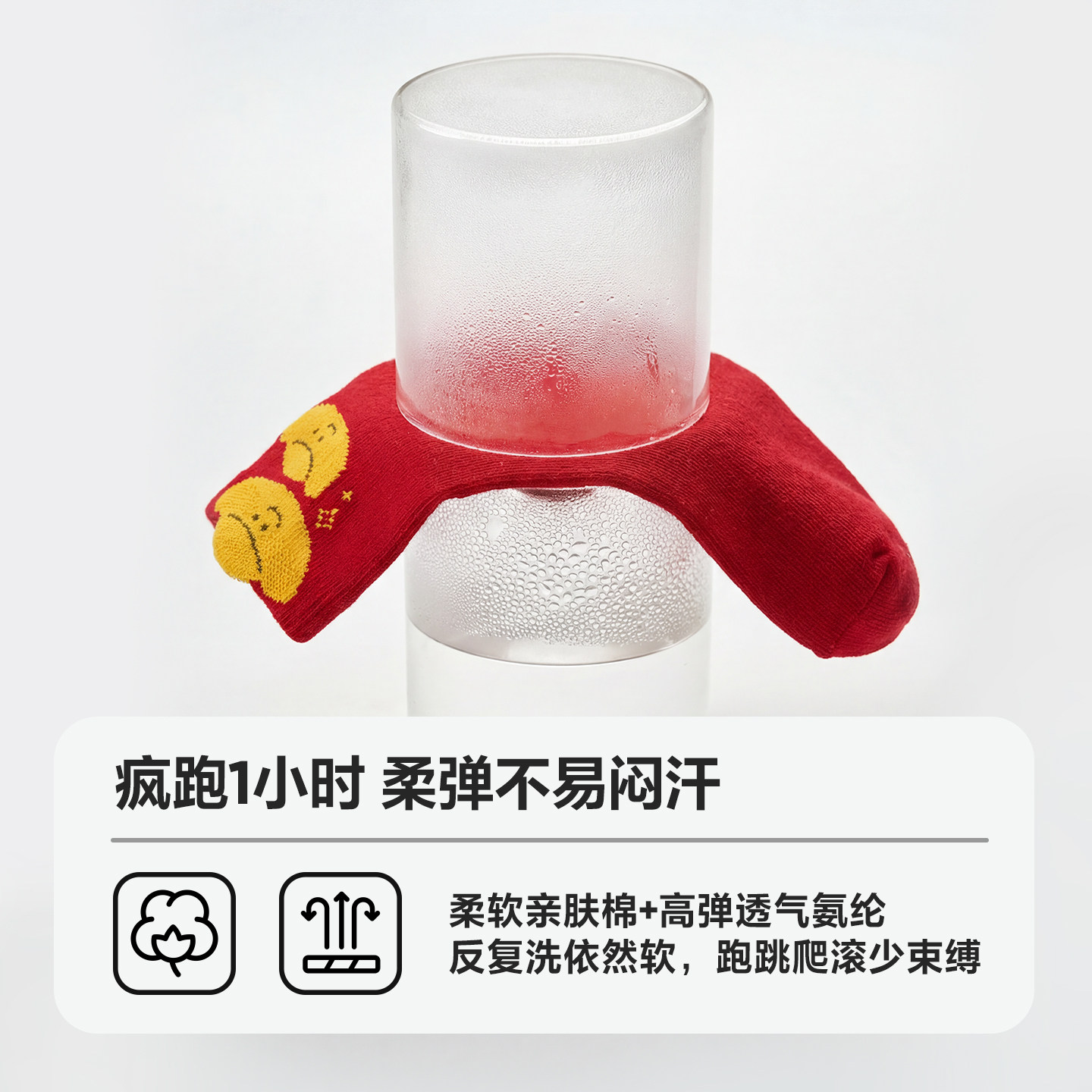 穿红迎新,棉弹红运袜
