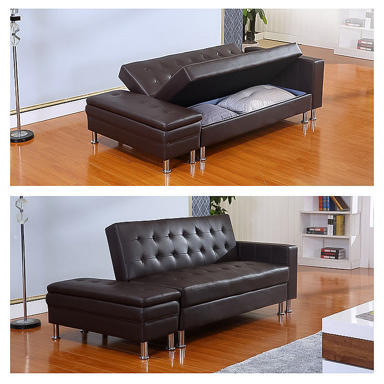 日式木架皮艺沙发床适用于客厅卧室 多功能可折叠双人沙发 小户型
