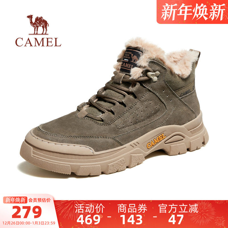 骆驼男鞋新款冬季加绒加厚保暖雪地靴防滑东北棉鞋休闲工装靴男款