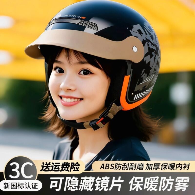 3C认证电动摩托车头盔男女士鸭舌帽半盔四季通用冬季透气轻便安全