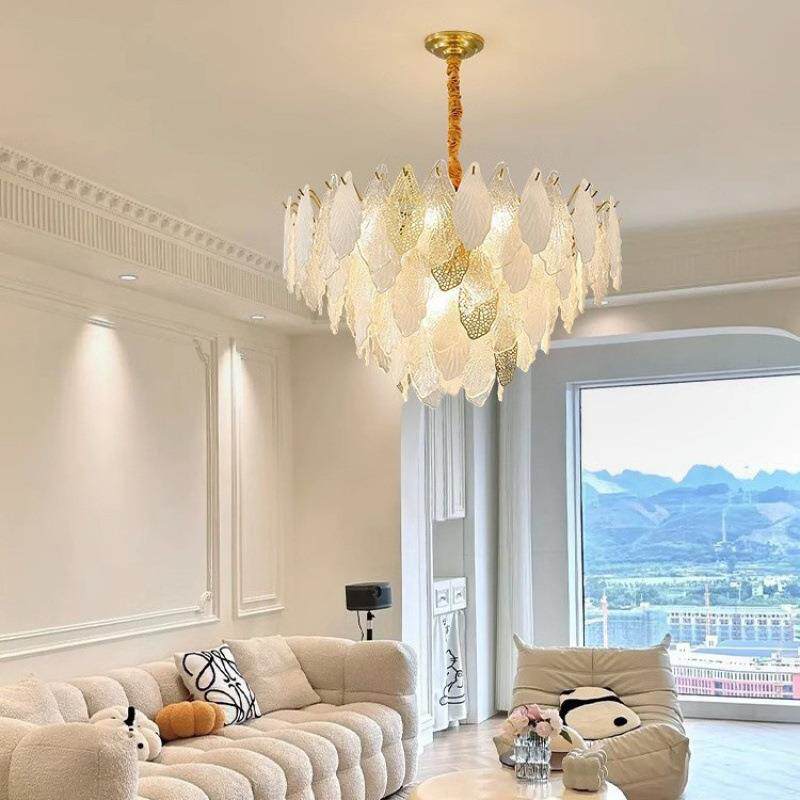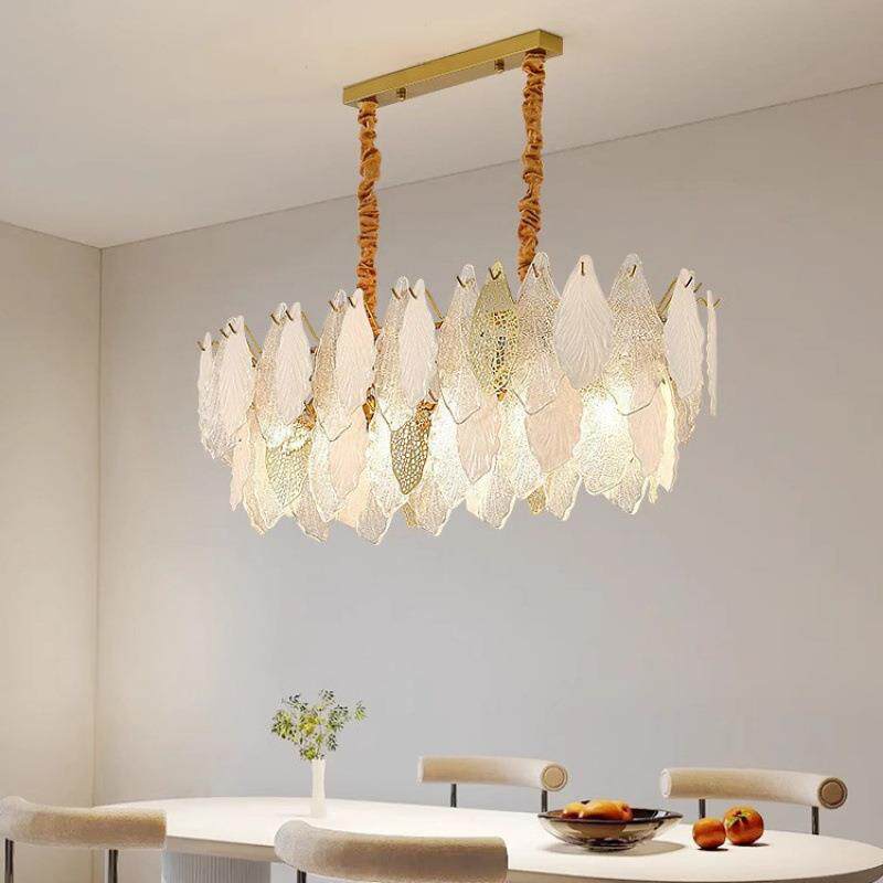 法式轻奢客厅水晶吊灯 简约现代创意高端主灯餐厅镂空叶子LED大灯