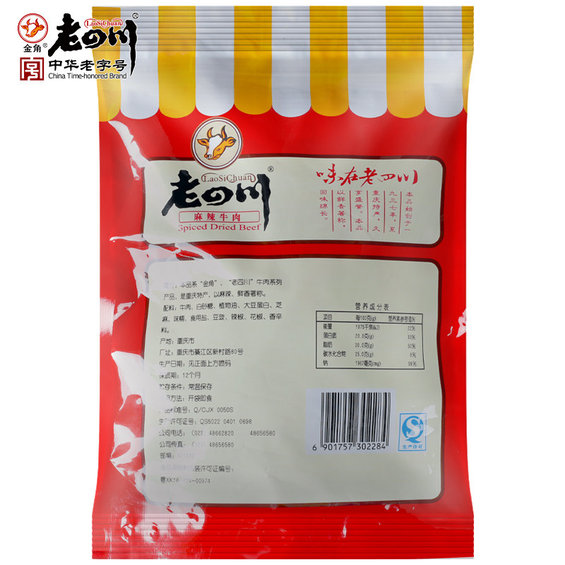 【老四川麻辣牛肉208g*2袋】重庆四川特产金角牛肉干零食特色小吃
