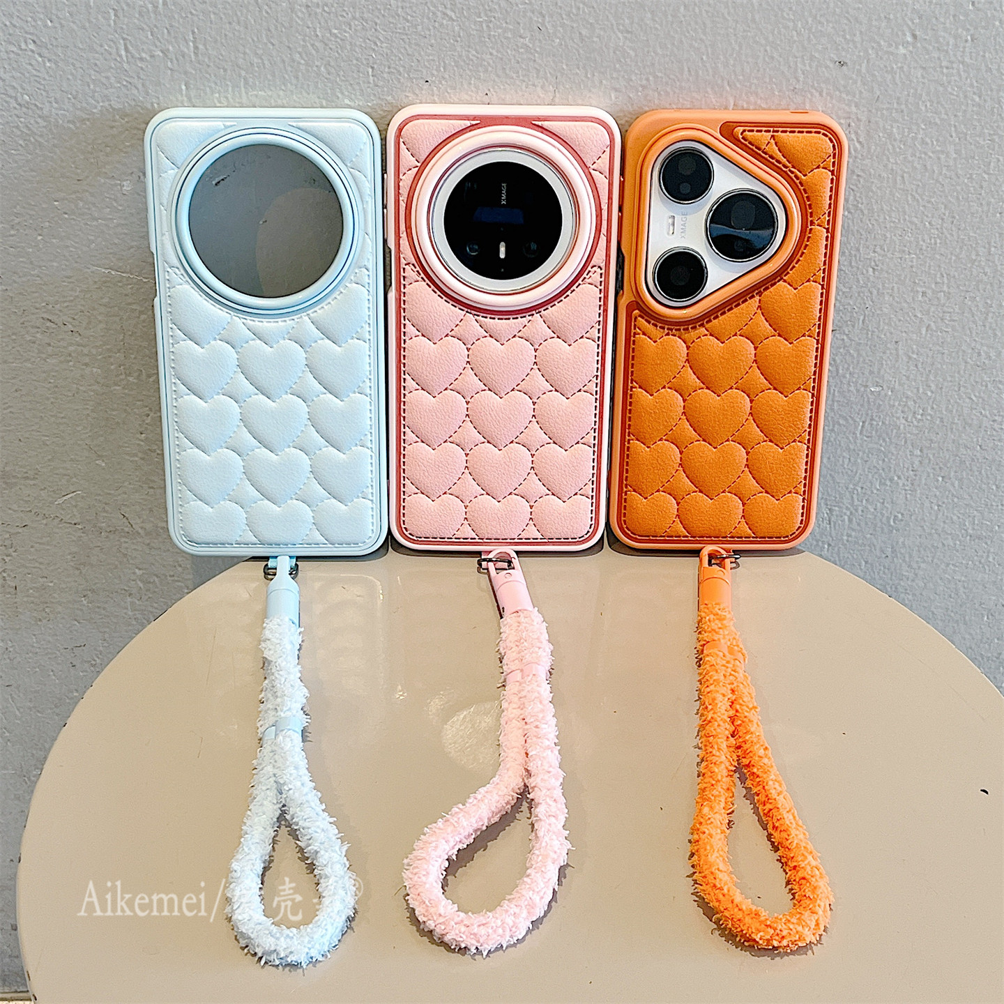 适用华为pura80pro+手机壳韩系简约ins鼓包皮质满屏刺绣爱心Pura70毛绒p80/p70气垫皮纹mate70pro+防摔保护套