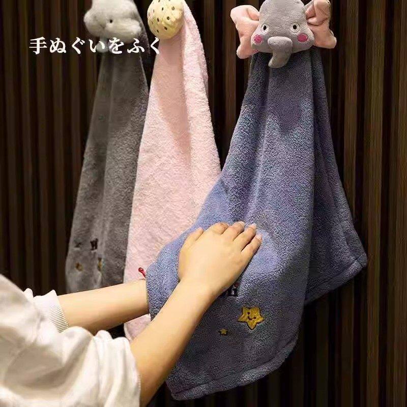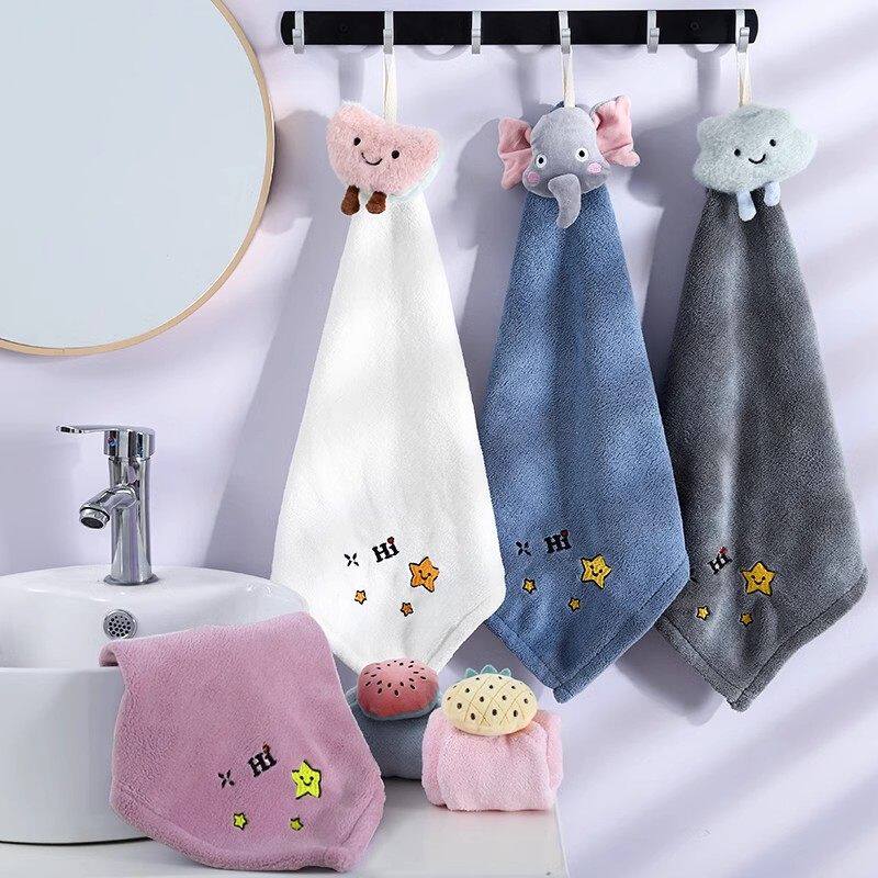可挂式卡通擦手巾吸水速干加大厚毛巾厨房卫生间抹手布可爱搽手帕