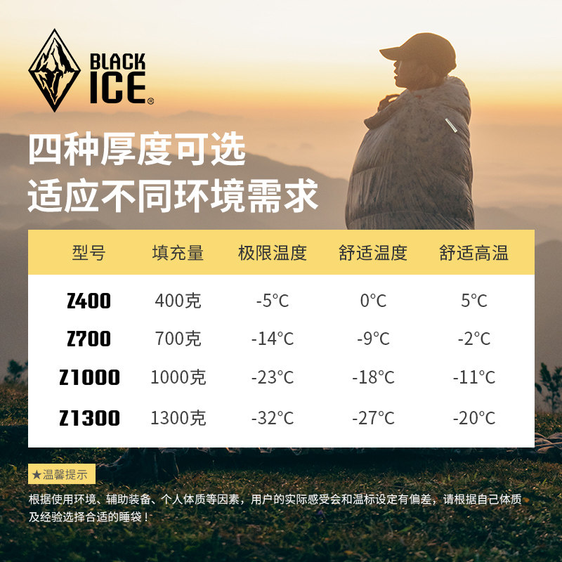 黑冰睡袋Z400/Z700/Z1000成人羽绒户外露营鹅绒极限旅行单人野外