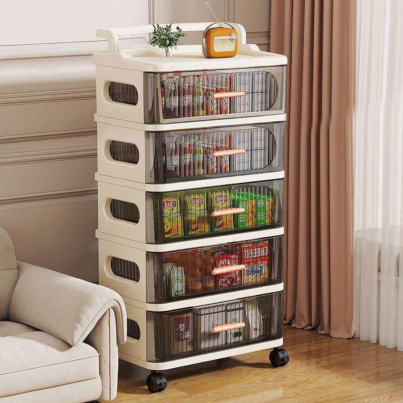 拉车零食置物架小推车落地多层家用抽屉式储物柜移动儿童玩具收纳
