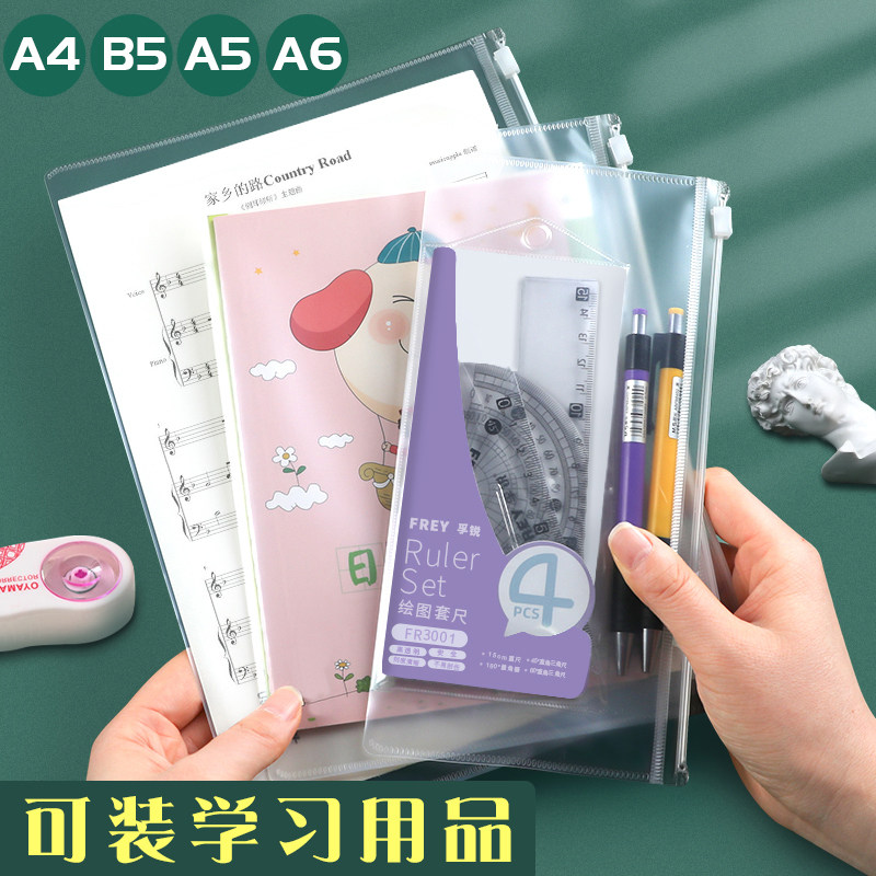 杰利文件袋透明拉链式a4资料袋考试用小学生塑料拉链a5/a6中高考快递防水可定制票据发票档案拉边袋加厚磨砂