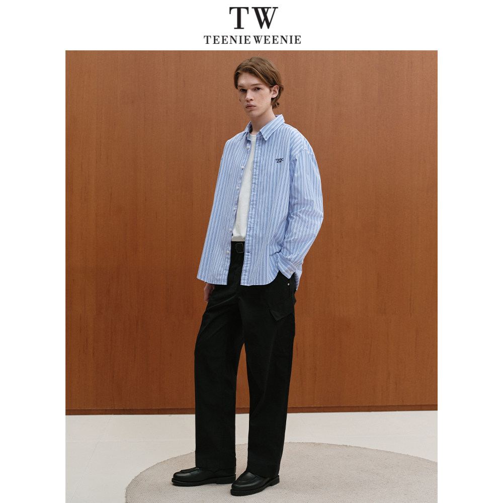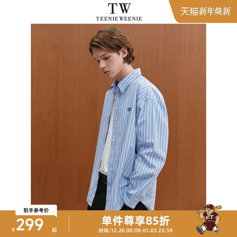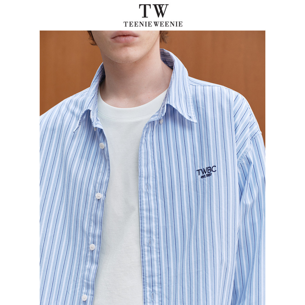 TeenieWeenie小熊男装条纹衬衫2025年春季新款时尚学院风宽松上衣