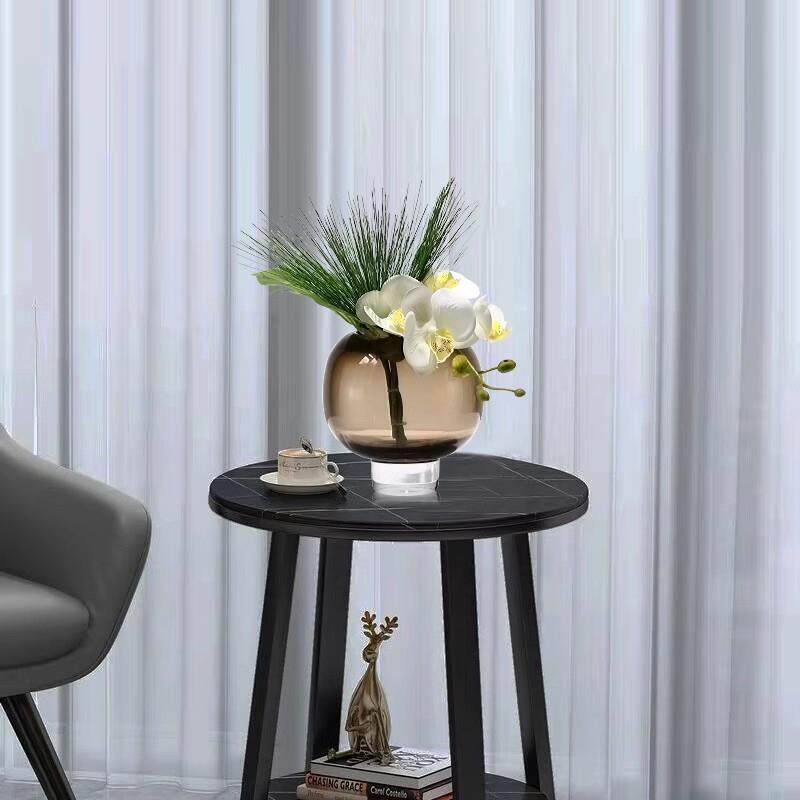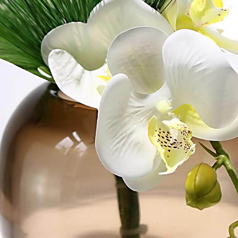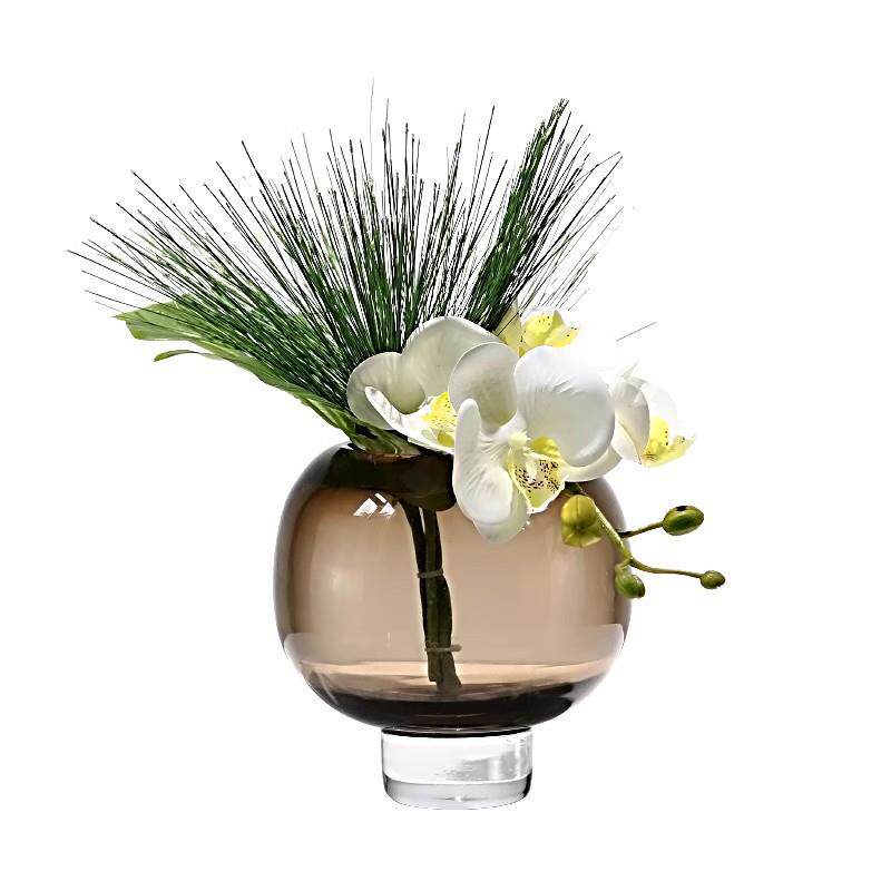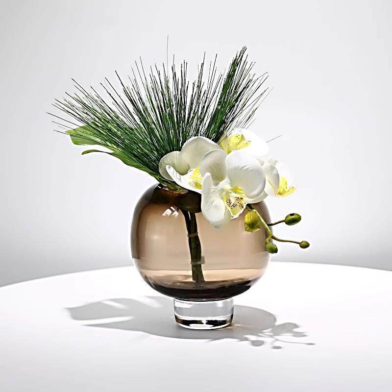现代轻奢仿真花艺棕色玻璃花器家居软装高档样板房客厅茶几摆设花