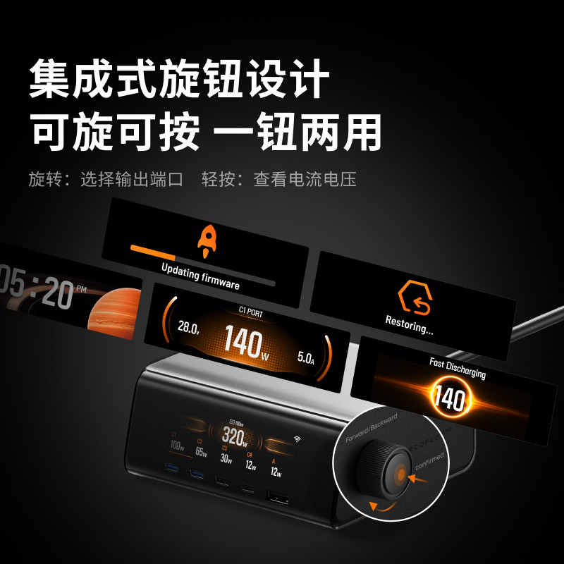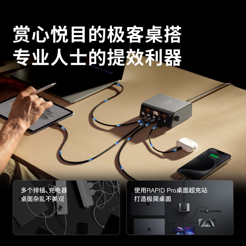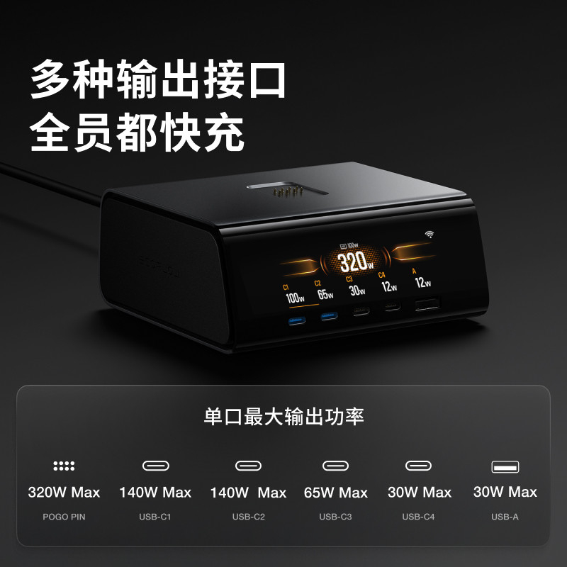 【3C认证】正浩RAPID Pro 320W氮化镓桌面超充充电站多设备搭配磁吸底座智能屏显多口快充iPhone17/平板/电脑