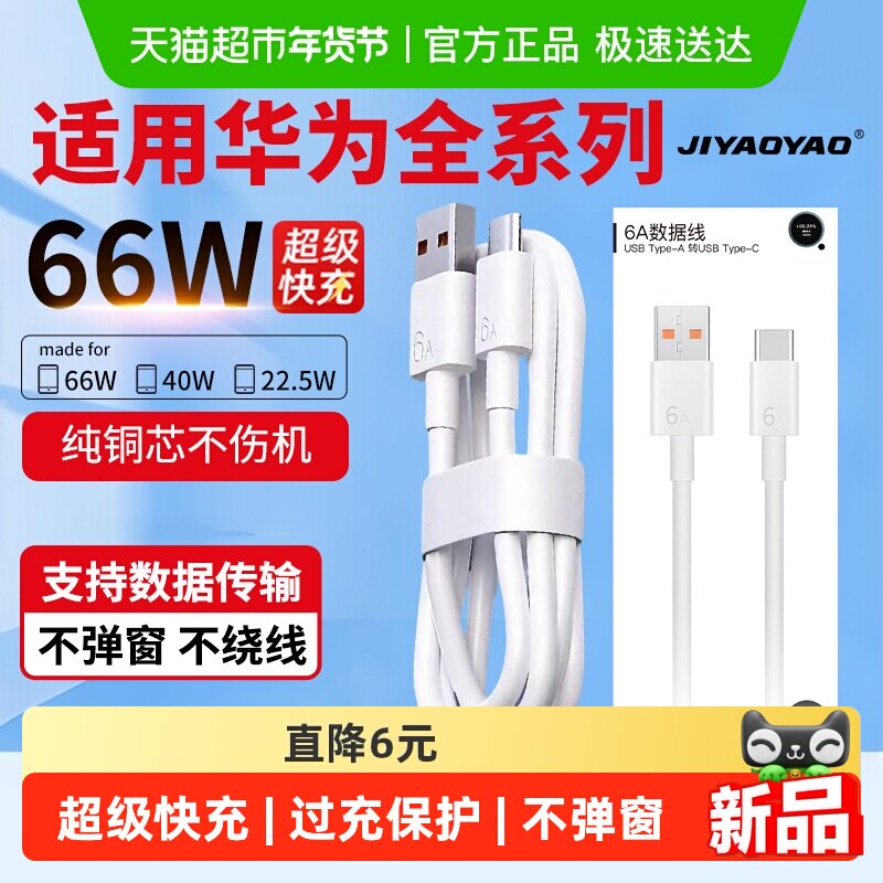 6A超级快充type-c数据线适用66W华为荣耀手机充电线车载长快充线