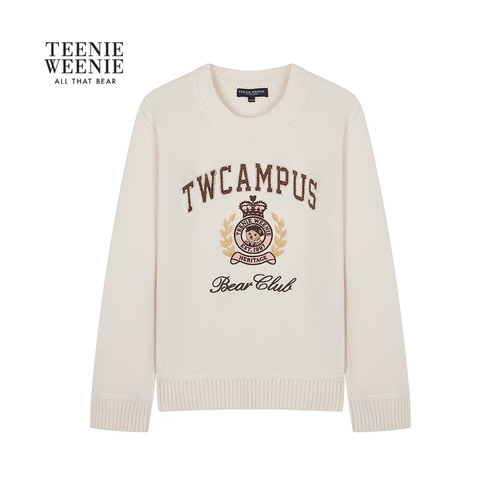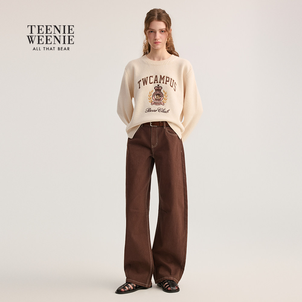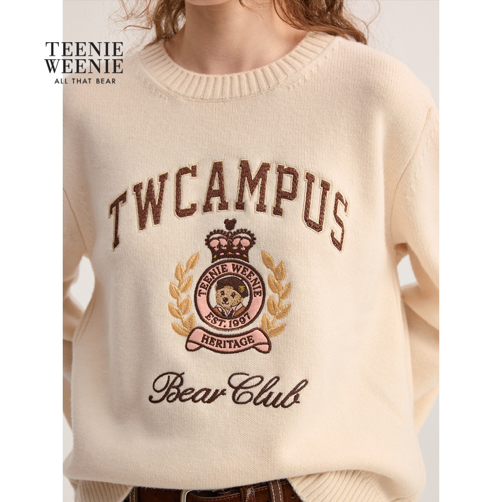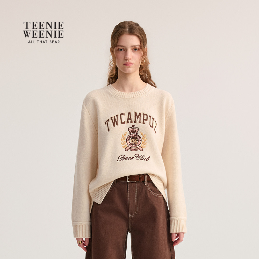 TeenieWeenie小熊女装毛针织衫秋冬季宽松舒适提花圆领套头毛衣